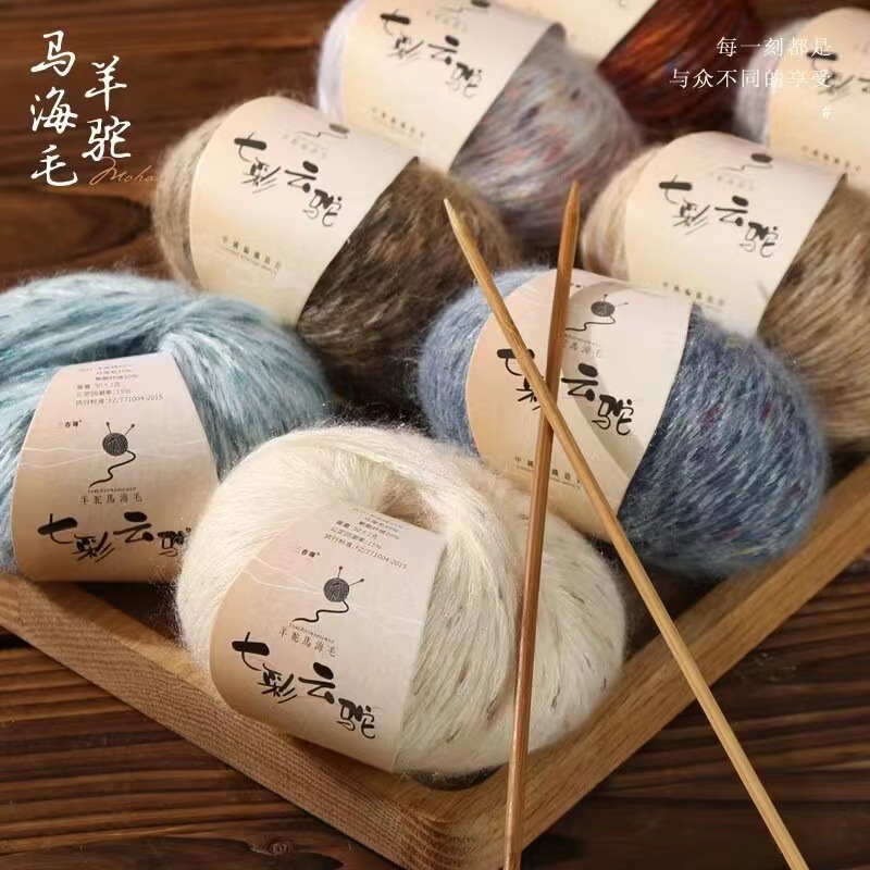 ウールキャメル毛糸編みセーター花柄スプレー毛糸七色雲ラクダ手編み毛糸カラースカーフ編み