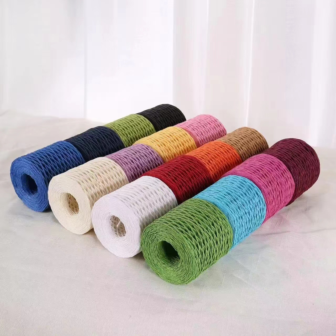 手编みラフィーライン草ひも材料糸かぎ针フック夏凉しい帽子フックバッグ毛糸DIYメーカー直販