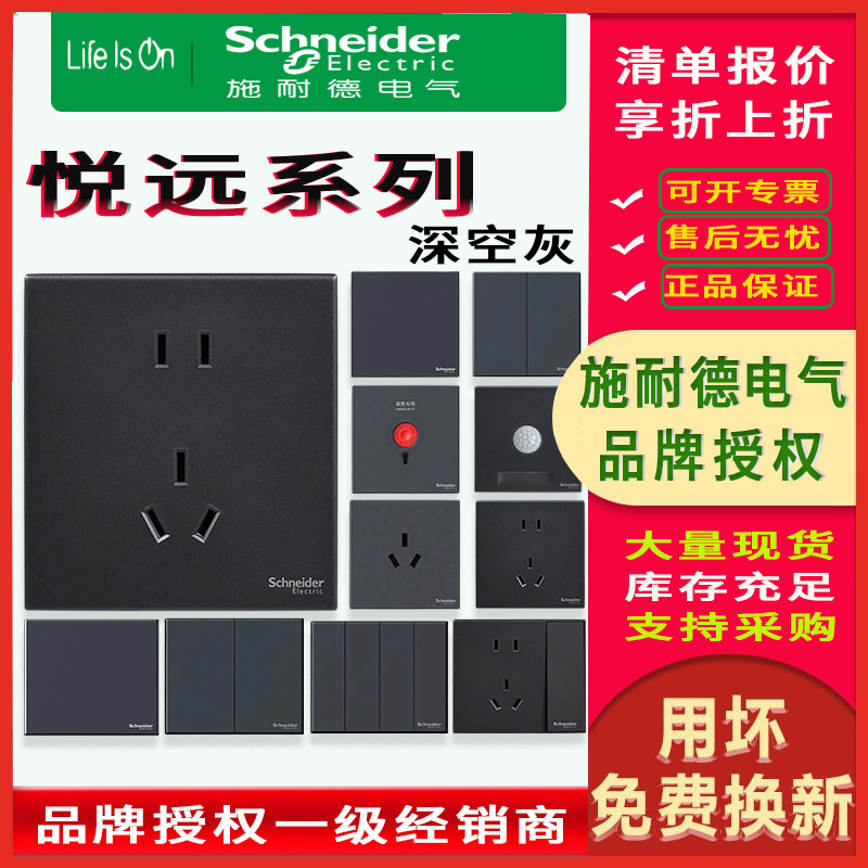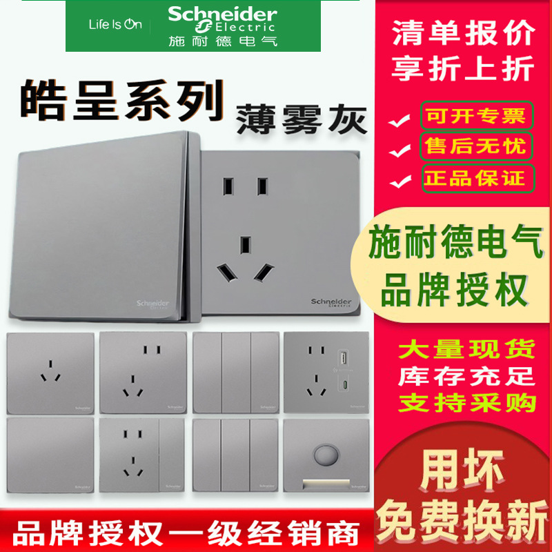 シュナイダー皓はかすみ灰スイッチソケットパネル家庭用86五穴暗装usb二三差エアコン壁を呈している
