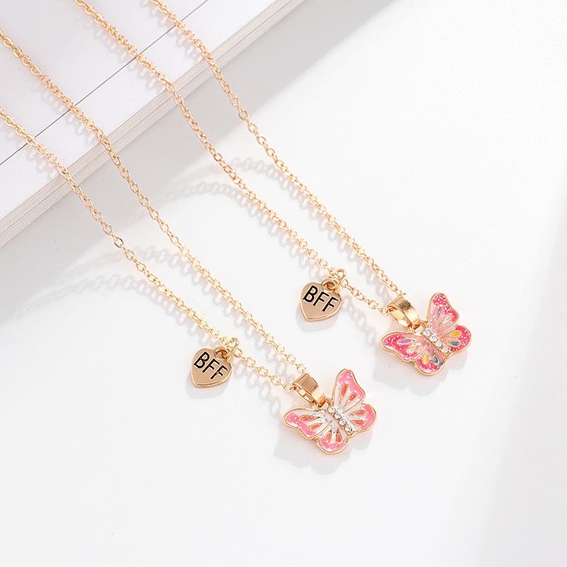 子供のアニメのネックレスの2つのセットbest firends蝶ペンダントの新しい親友の女の子のネックレスセット