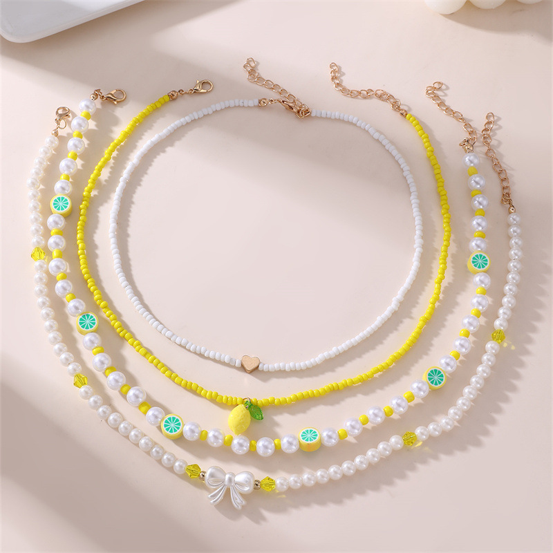 跨境欧美儿童米珠串珠波西米亚蝴蝶结柠檬配件多层叠戴女童项链