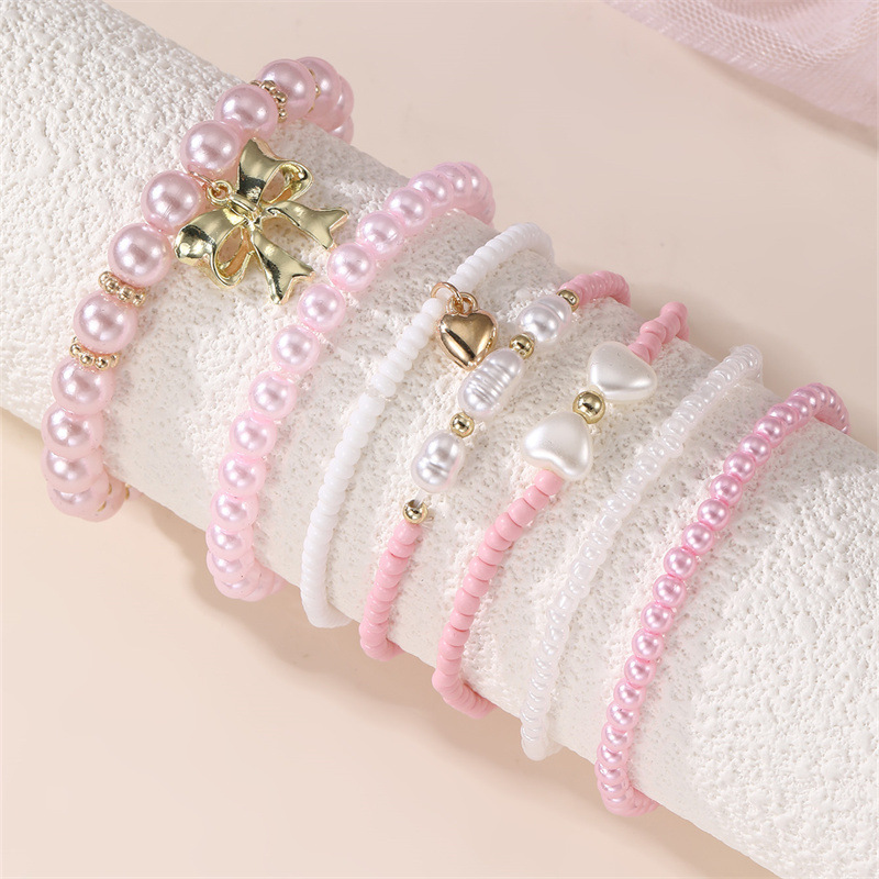 越境冬新作ジュエリーピンク系愛蝶ペンダント模造パールベージュ手作りビーズ子供ネックレス