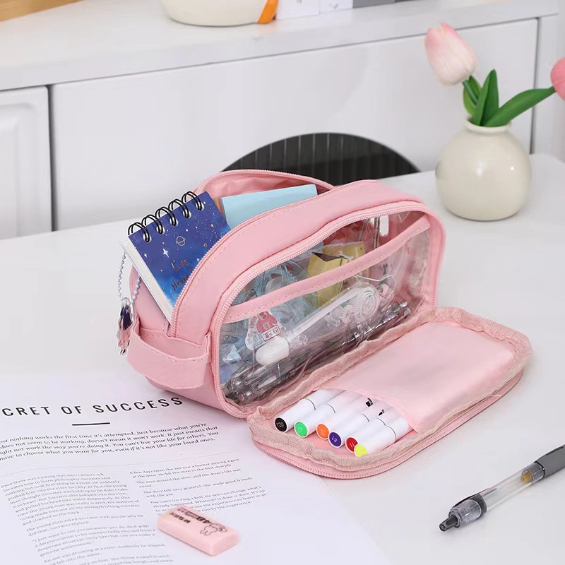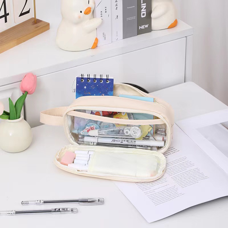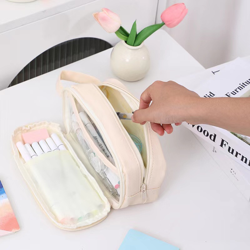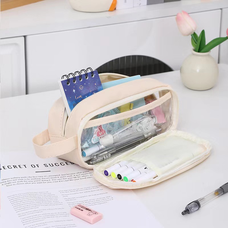 跨境简约ins风高颜值PU皮透明笔袋大容量初高中生笔盒收纳大容量