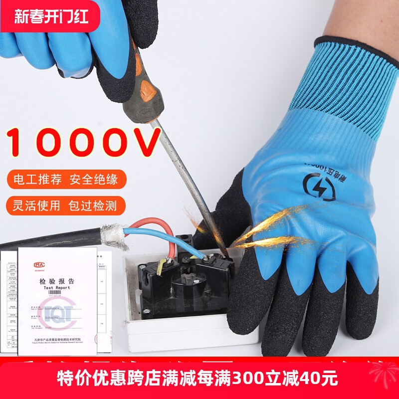 金歩安1000V絶縁手袋両面絶縁防水防電軽薄1KV低圧耐摩耗電気手袋