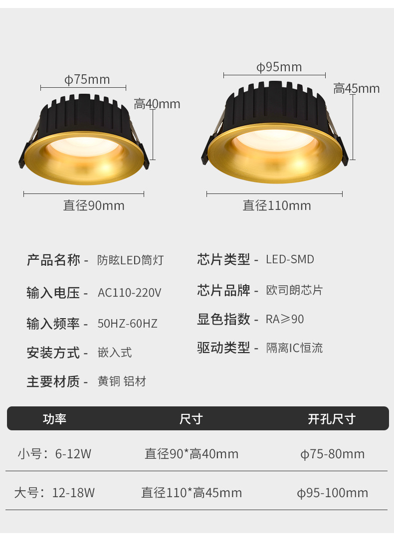 クロスボーダー全銅ダウンライト現代シンプルled埋め込み式ホームライトリビングルーム天井灯高顕通路玄関灯