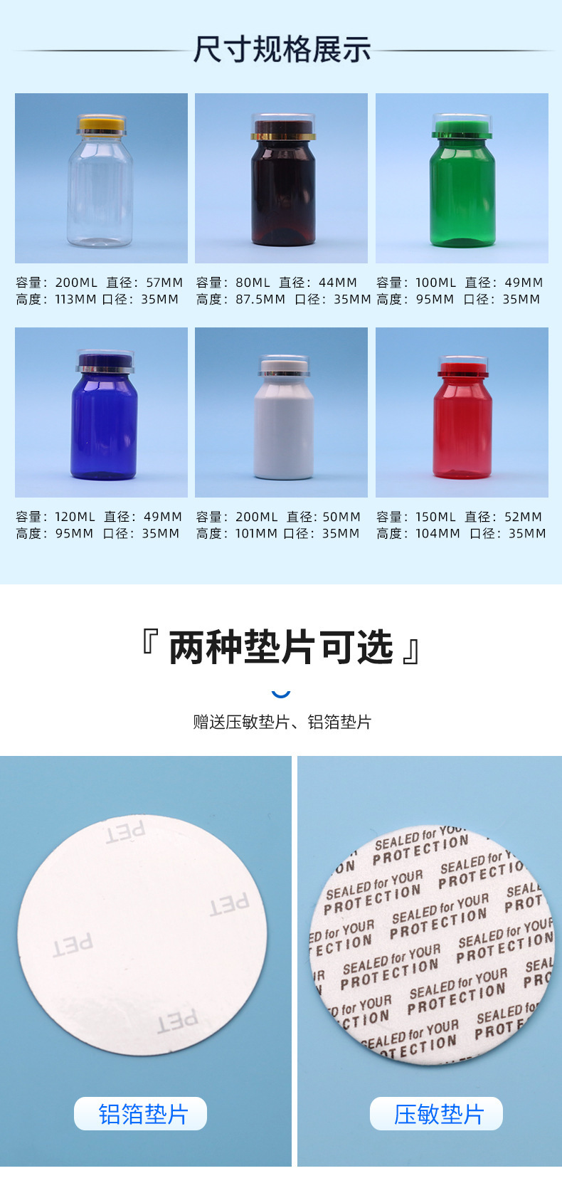 保健品瓶带盖子加厚密封pet塑料瓶大容量维生素胶囊鱼油分装瓶子