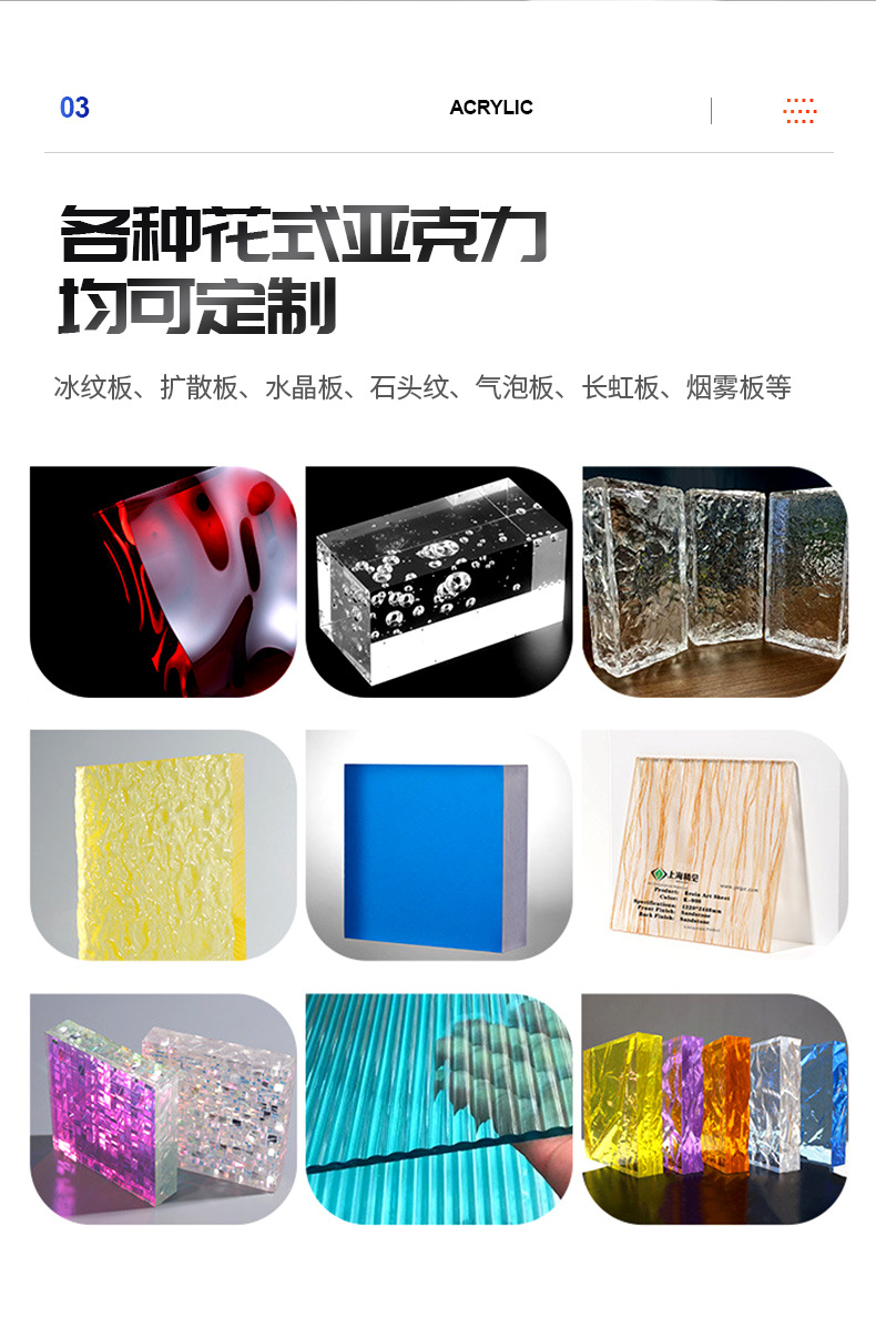 カスタマイズされたアクリル長虹水波紋石パターンシェルパターン細かいパターンメッシュパターン樹皮パターンプレキシガラスプレート