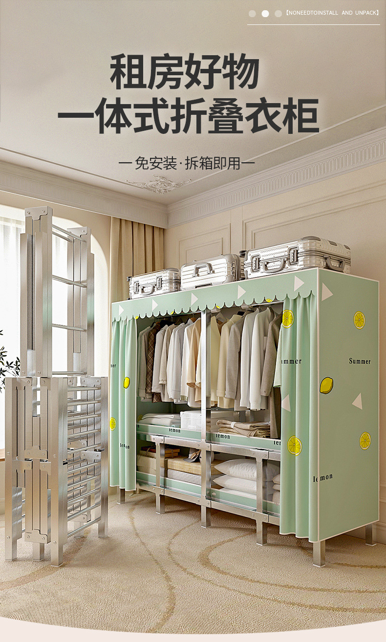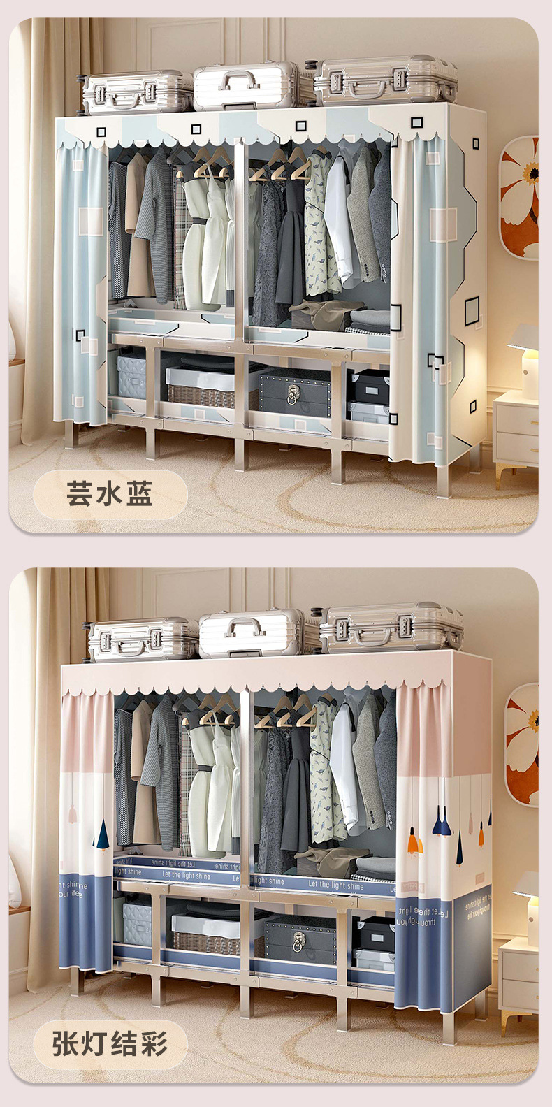 免安装折叠衣柜28MM加粗加厚全封闭挂衣橱卧室宿舍用货架式衣柜