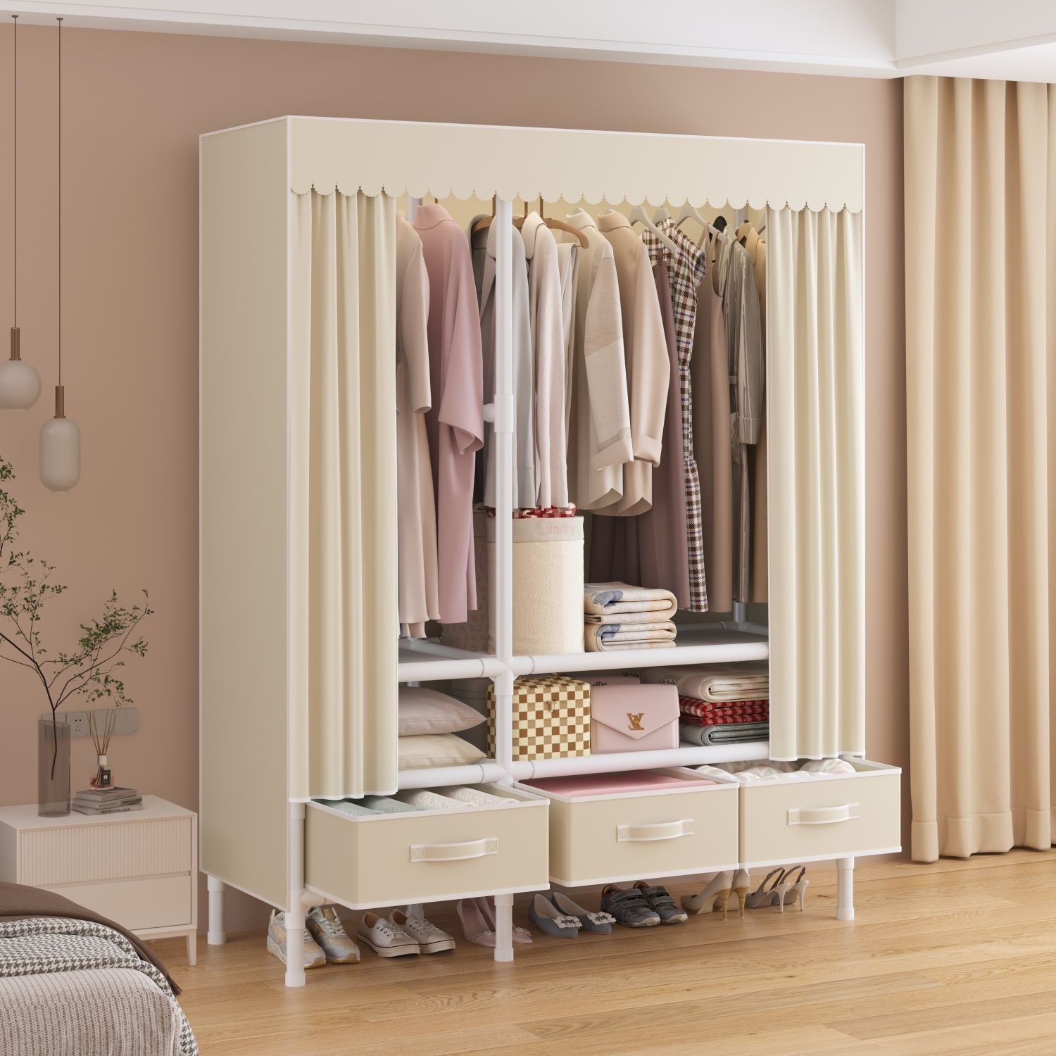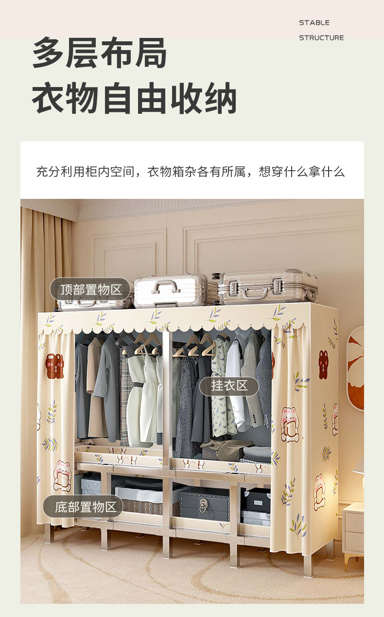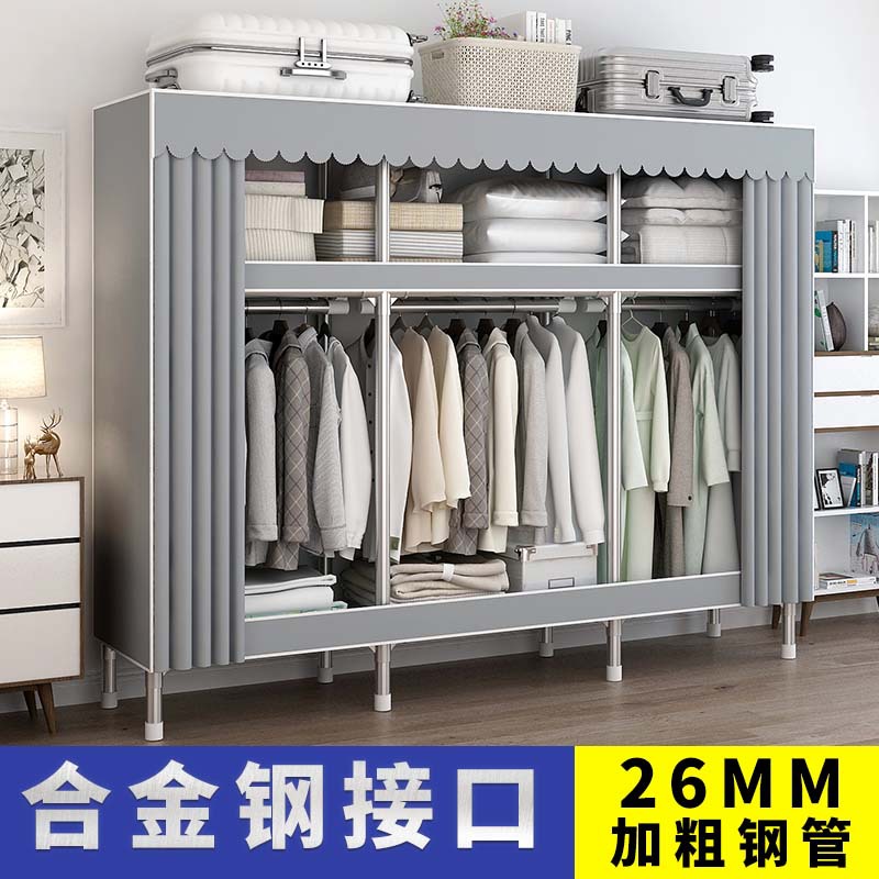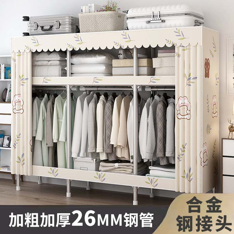26mm布製ワードローブ、寝室用家庭用簡易ワードローブ、賃貸住宅用全鋼製フレーム組立式ワードローブ、小規模住宅向け