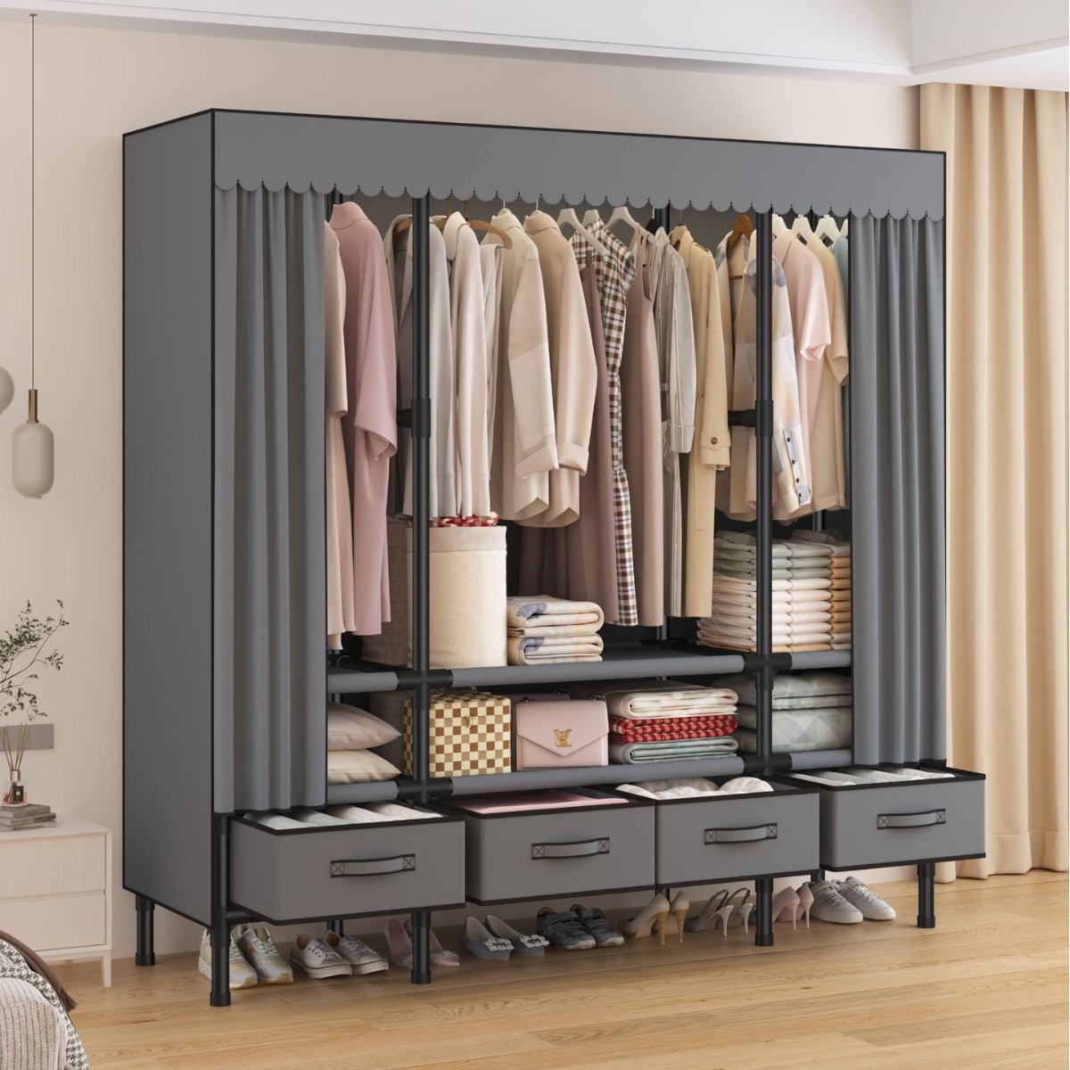 簡易布製ワードローブ 寝室用 家庭用 賃貸住宅用 全鋼製フレーム 厚みのある鋼管 組立式ワードローブ 工場直販