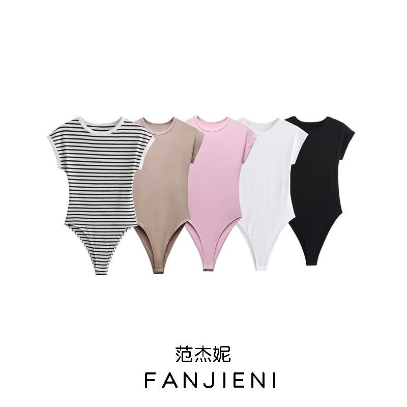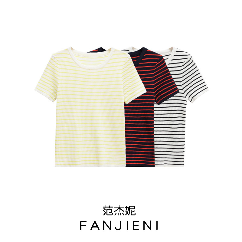 ZR外国貿易卸売欧米風女装気質シンプルストライプスリム丸首半袖ニット上着3519020