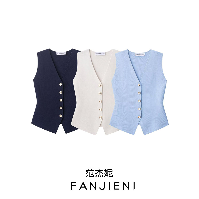 ZR外国貿易卸売り欧米風女装ファッション金色ボタン飾りニットvネックゆるいベスト上着