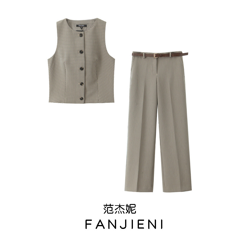 ZR外国貿易卸売り欧米風女装新型フランス袖なし丸襟格子袖なしベスト馬クリップ8372410