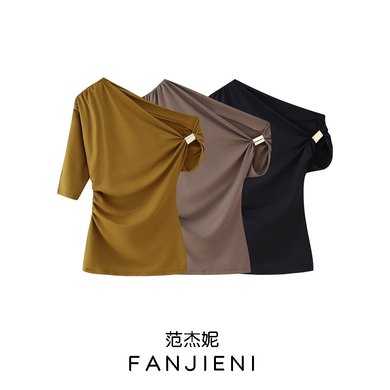 ZR外国貿易卸売り欧米風女装ファッション百合シンプル首襟シルクサテン質感上着2892650