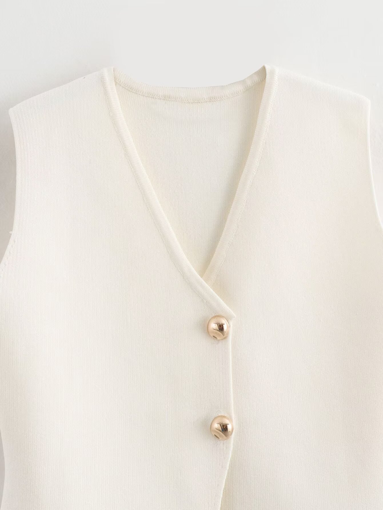 韓国版2025新型ファッション純色金色ボタンニットvネック2つのボタンオープンベスト