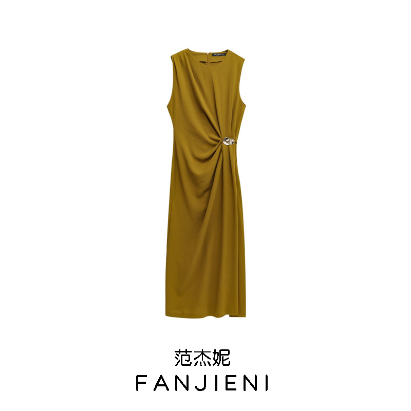 ZR外国貿易卸売り欧米風女装新型しわ飾り気質丸首袖なし迷笛ワンピース5029067