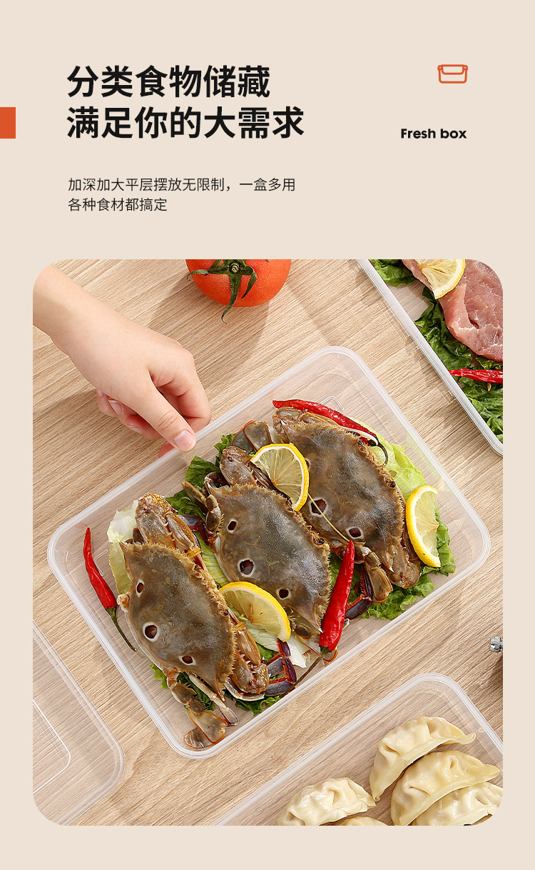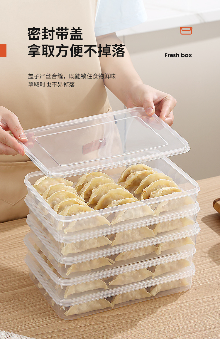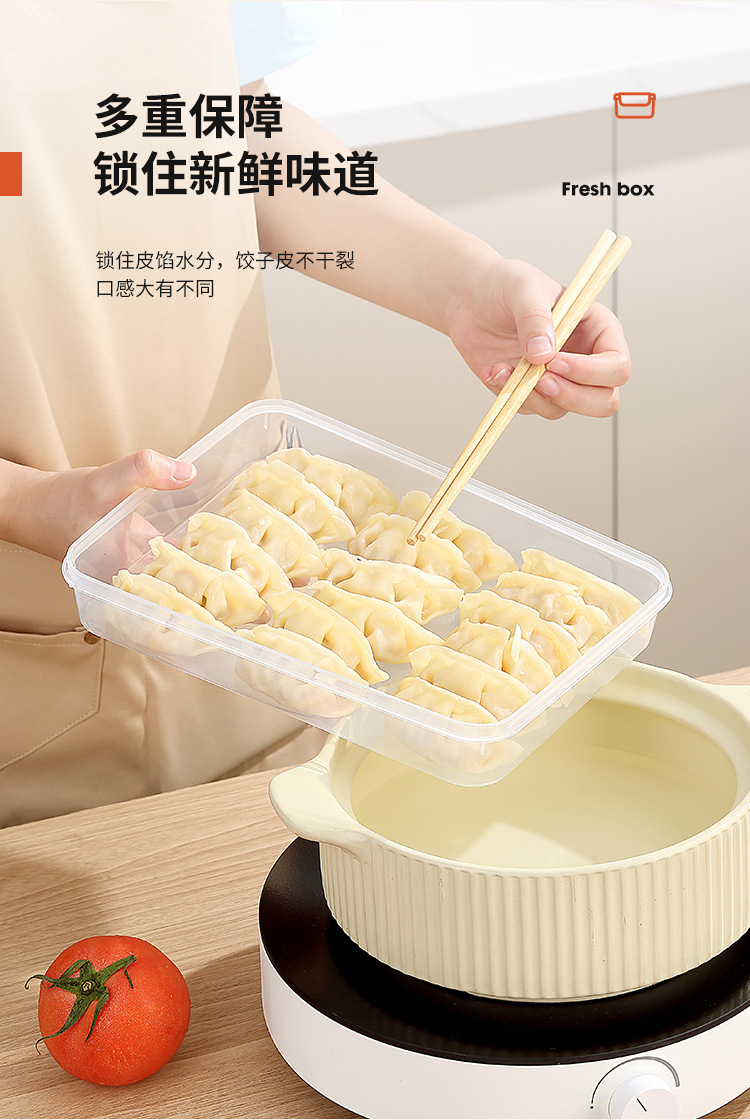 餃子ボックスは、特大の家庭用冷蔵庫野菜室、急速冷凍餃子、焦げ付き防止底餃子トレイ、食品収納ボックスを積み重ねることができます。