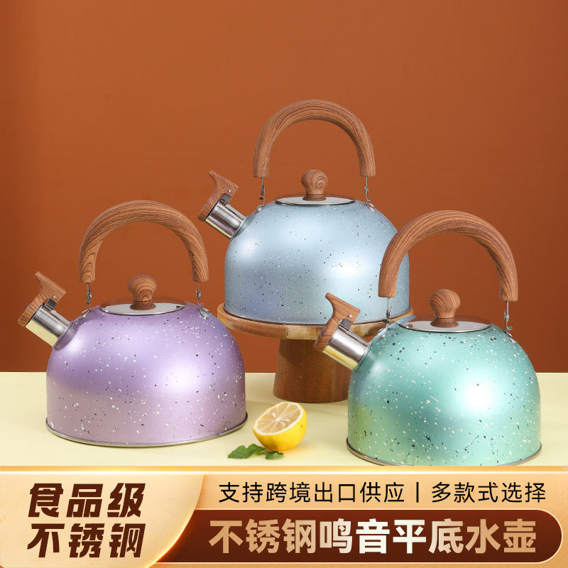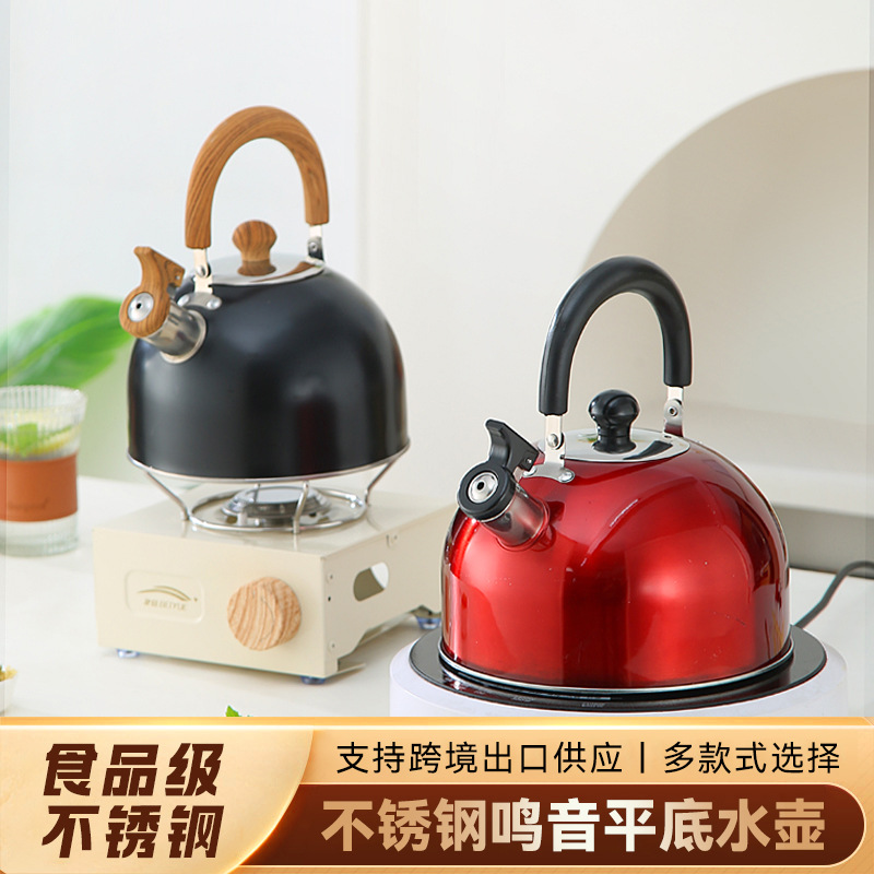 跨境新款不锈钢平底鸣笛烧水壶家用whistling kettle teakettl