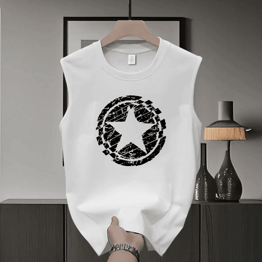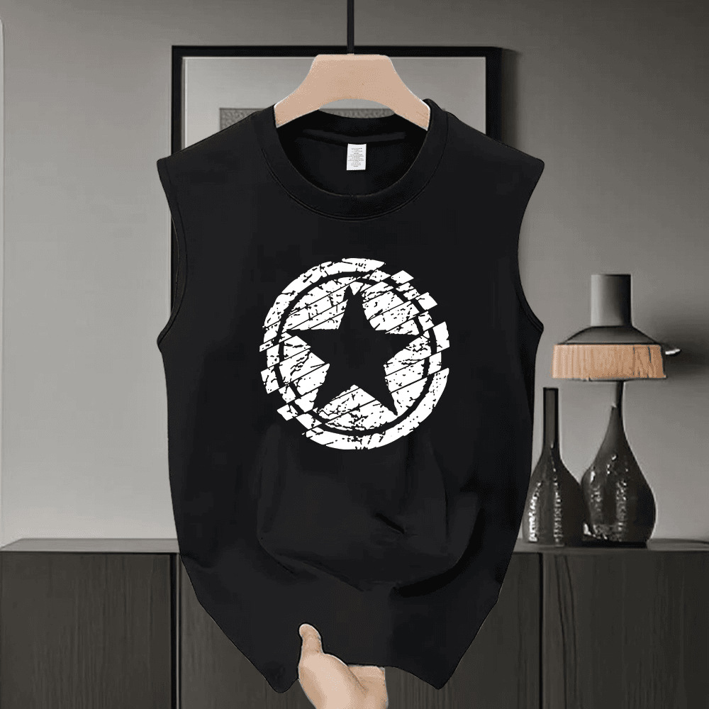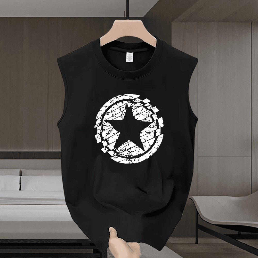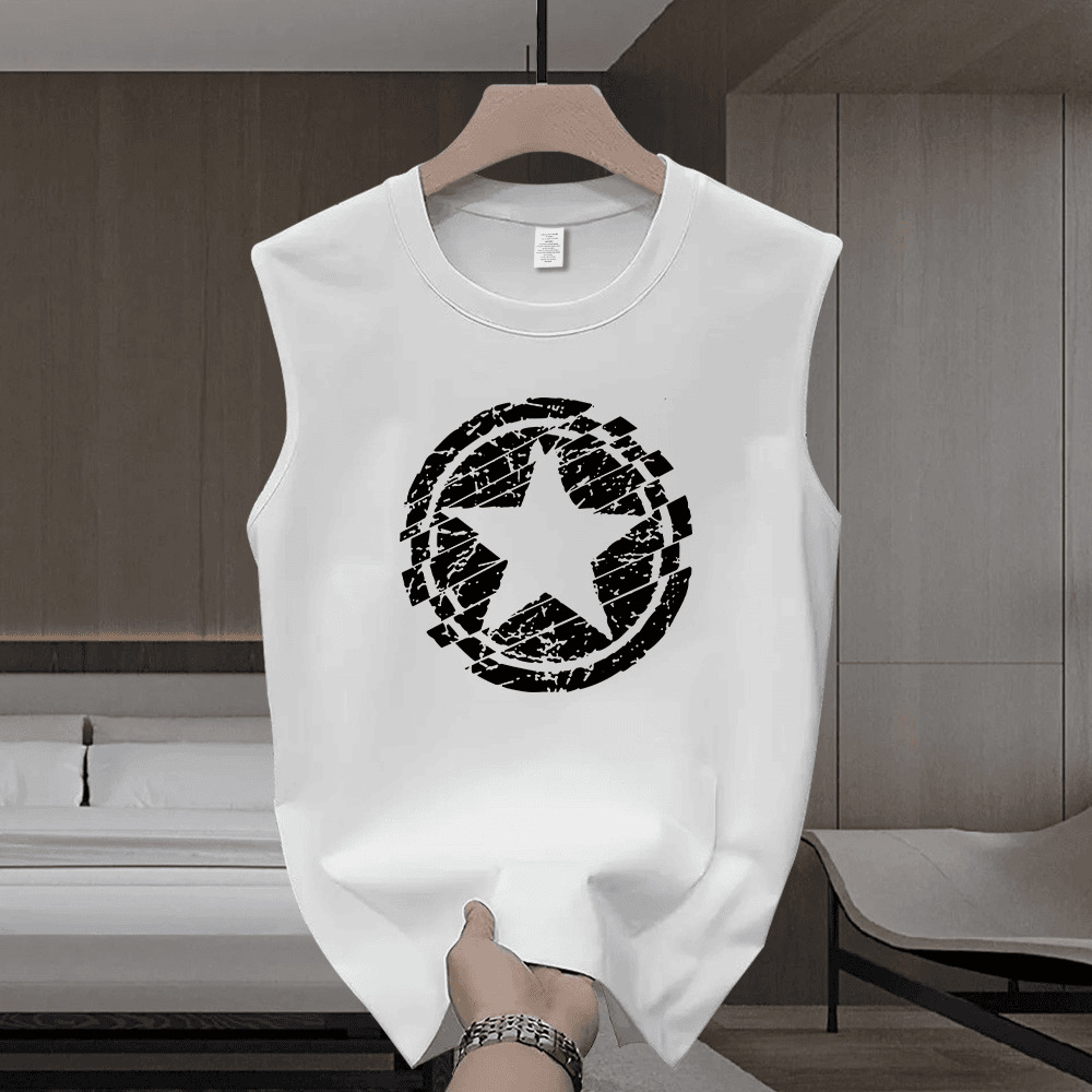 2025 ヘビーウェイトピュアコットントレンディなブランドクリエイティブファッションノースリーブベストレタープリントメンズ夏ラウンドネックカジュアルチョッキトップ