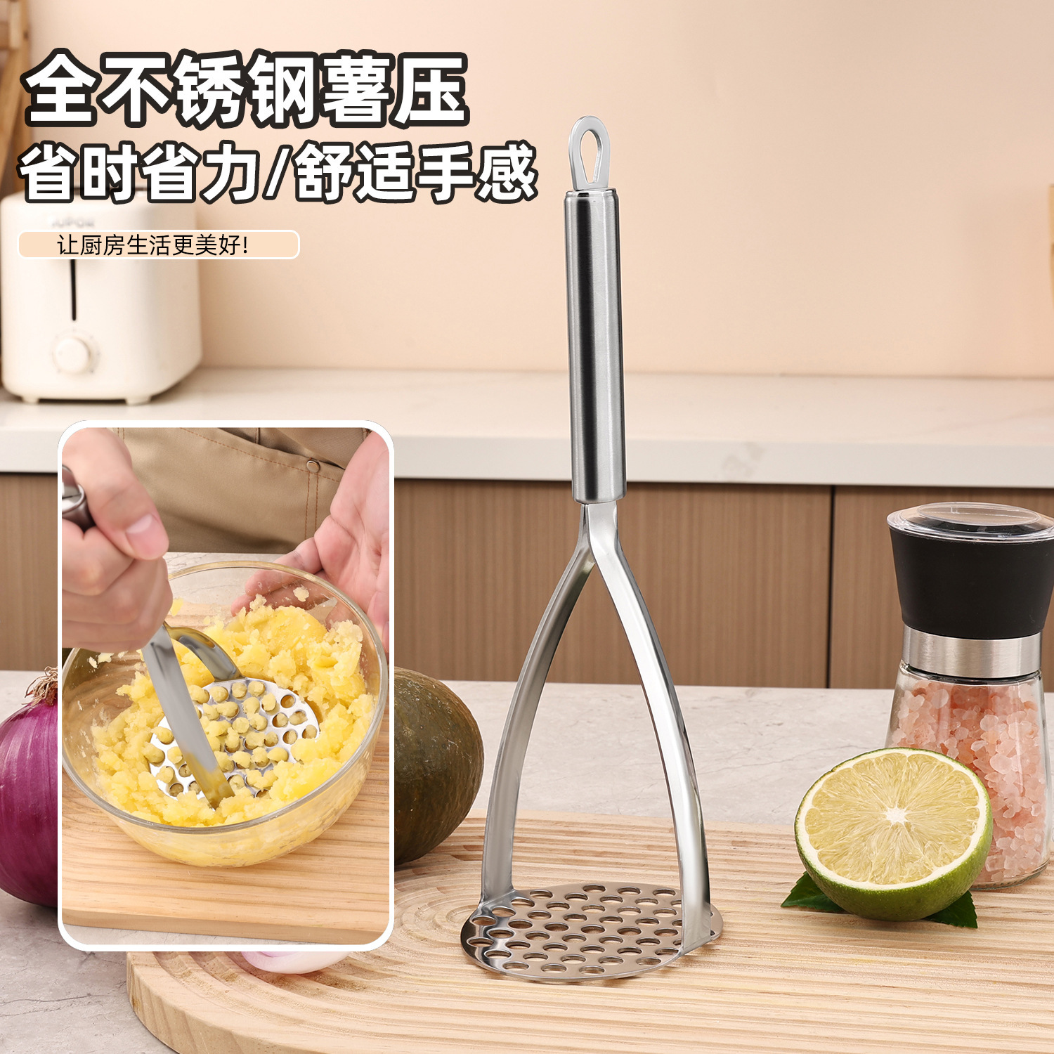 ステンレス鋼マッシュポテトマッシャー家庭用ポテトプレスキッチンガジェット卸売マッシュポテトプレス不規則なポテトプレス