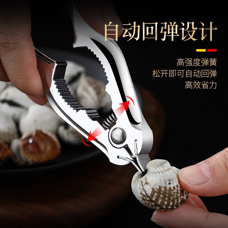 多目的カキオープナー亜鉛合金キッチンカキプライヤーシェルオープナーウォールナットクリップカキブラッドカエルシェルカキクリップ