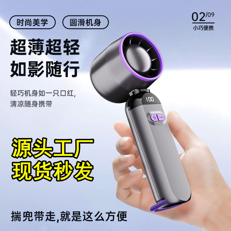 【送料無料】新しい折りたたみハンドヘルドファンポータブルミニファンUSB充電デジタルディスプレイタービン小型