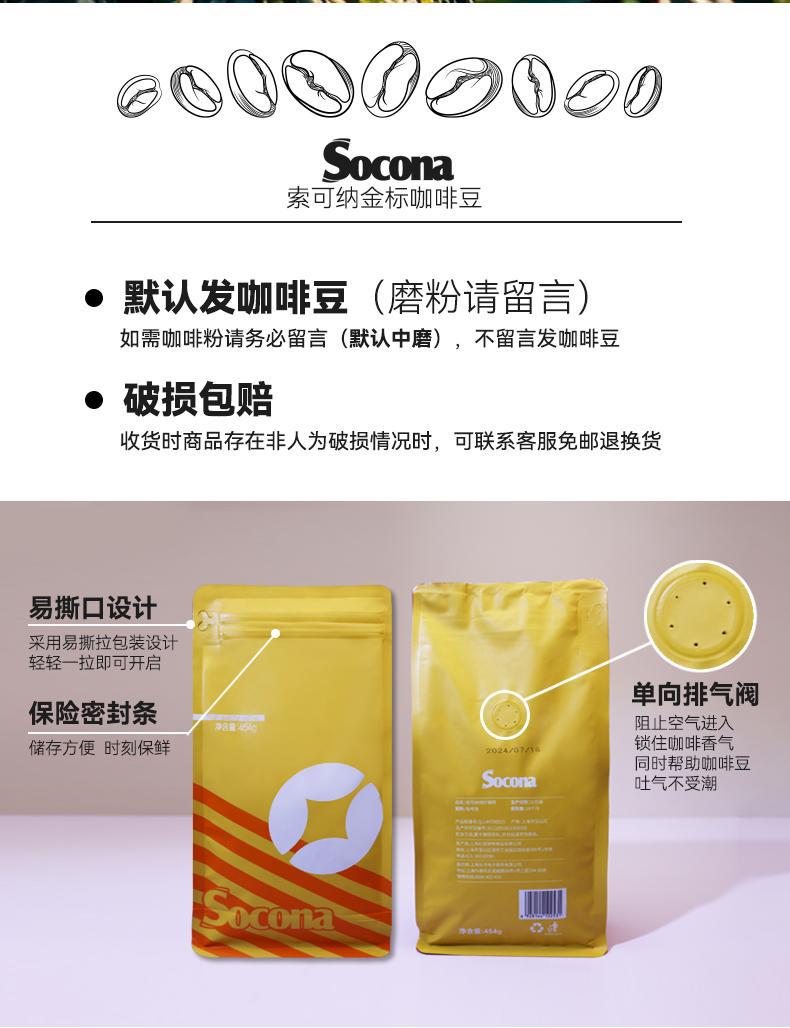 Socona金標シリーズモカ風味コーヒー豆新鮮焙煎配合手沖現コーヒー粉454g