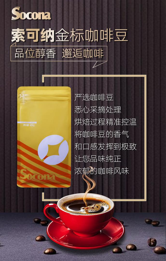 Socona金標シリーズブラジル風コーヒー豆新鮮焙煎配合現磨純黒コーヒー粉454g
