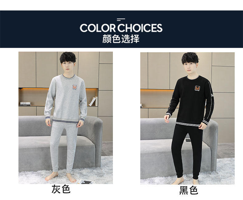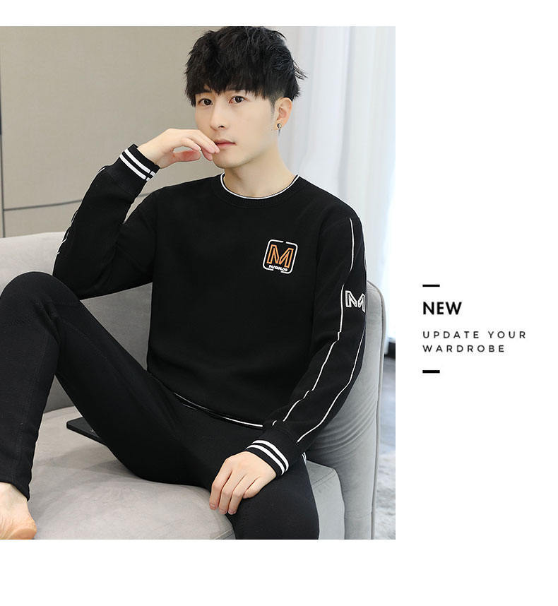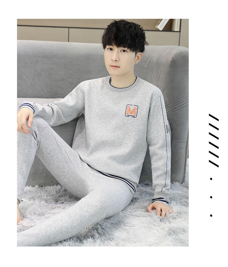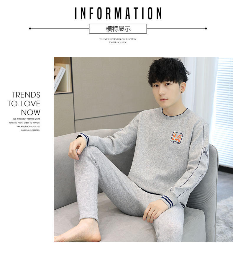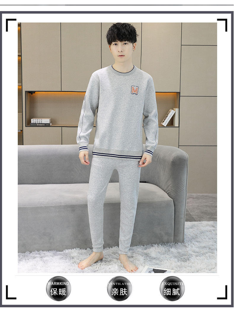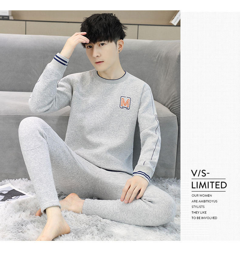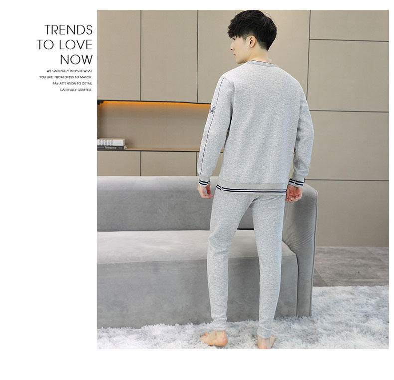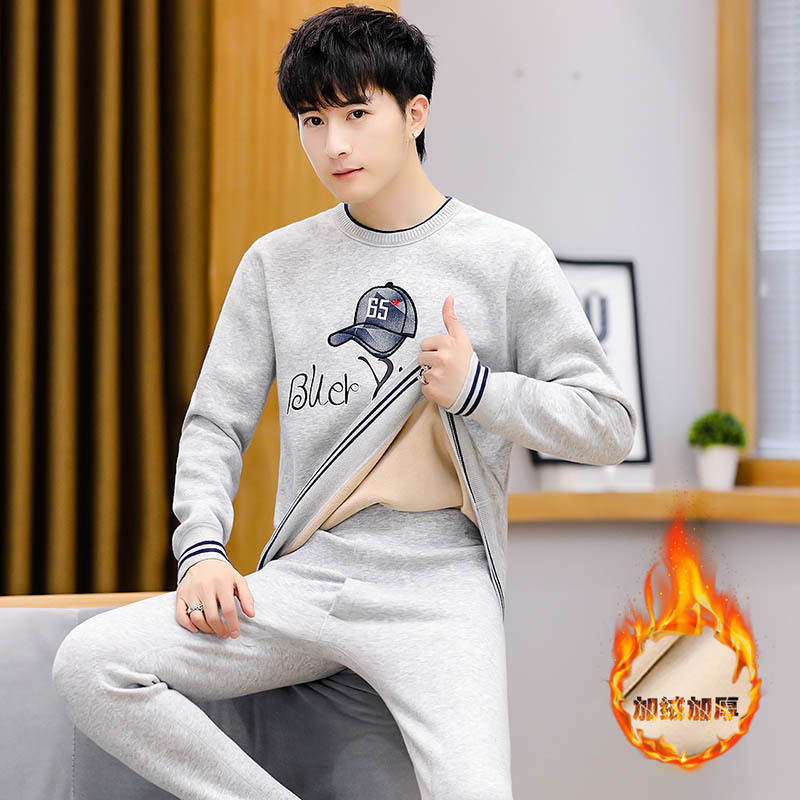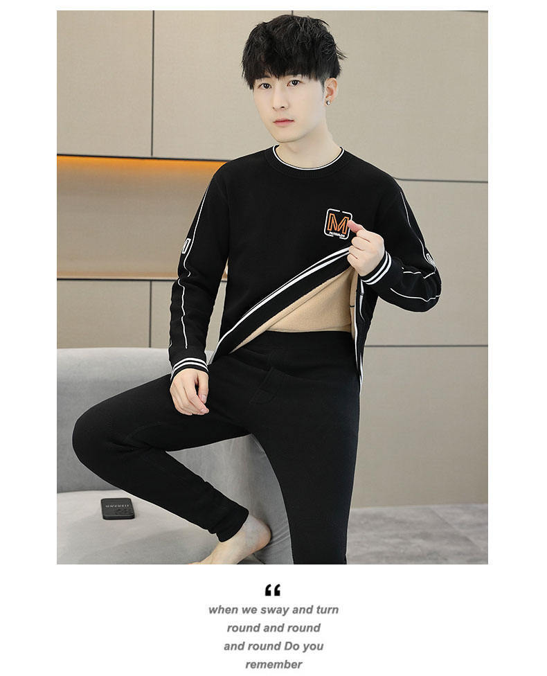 メンズ丸首とベルベットの厚い長袖保温下着セット潮青少年男性秋衣秋ズボン修身セット