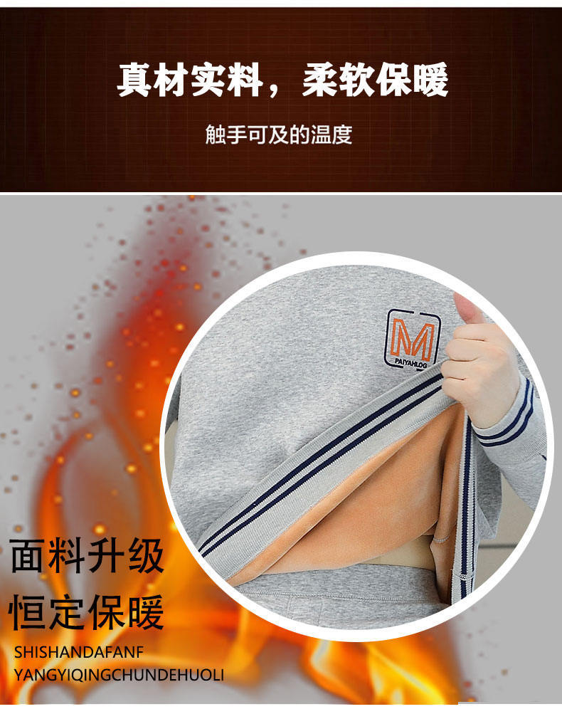 中学生保暖内衣套装青少年加绒加厚秋衣裤高中生男大童棉毛衫冬季