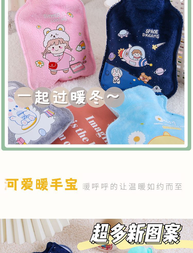 新款冬季毛绒热水袋卡通可爱防寒学生热水袋注水绒布宿舍暖宝宝
