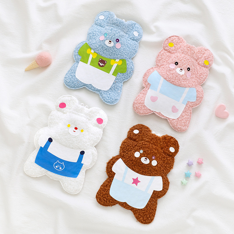 鸿牛可爱热水袋卡通毛绒暖手宝随身注水袋保温袋泰迪卷毛暖水袋
