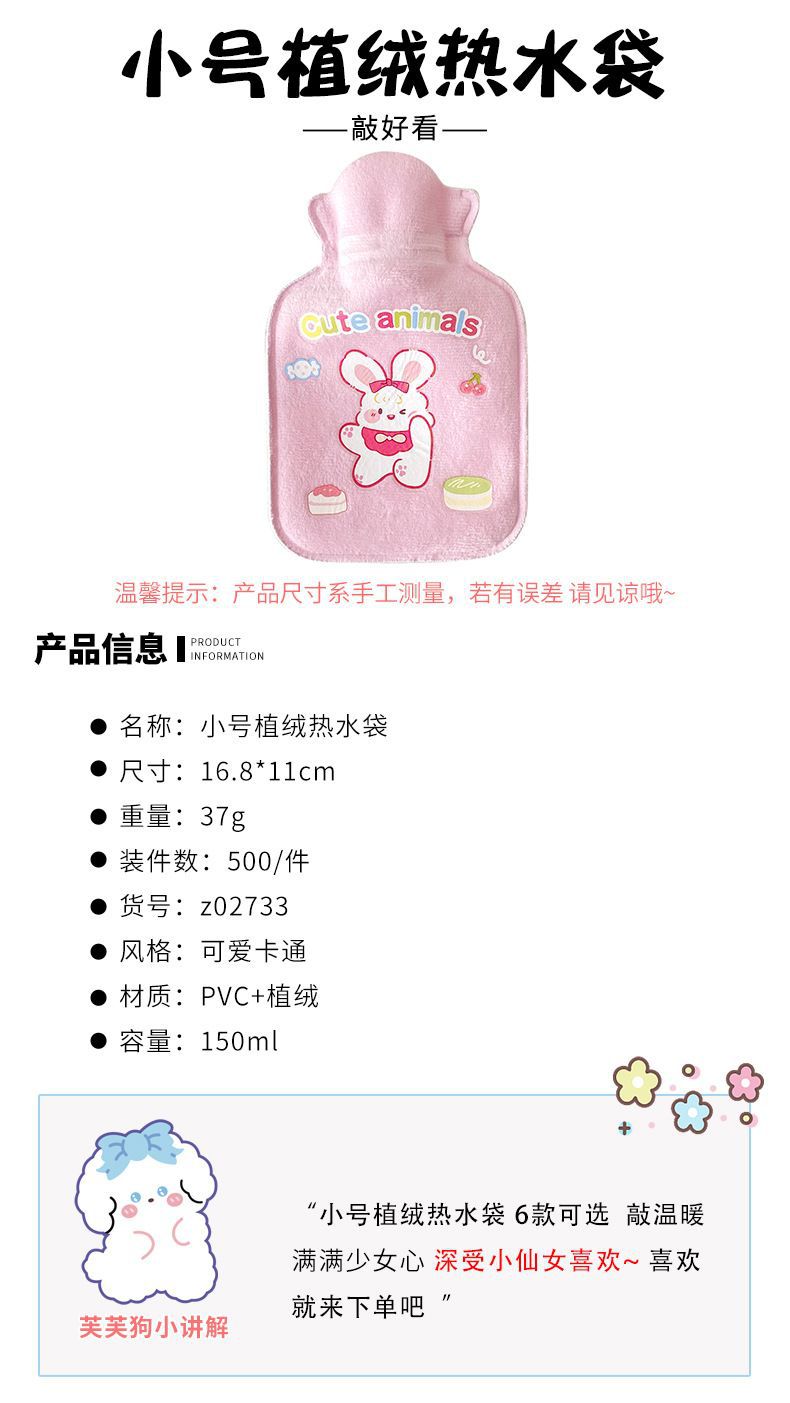 卡通注水热水袋pvc毛绒布加厚暖手宝批发小巧便携礼品灌水暖手袋