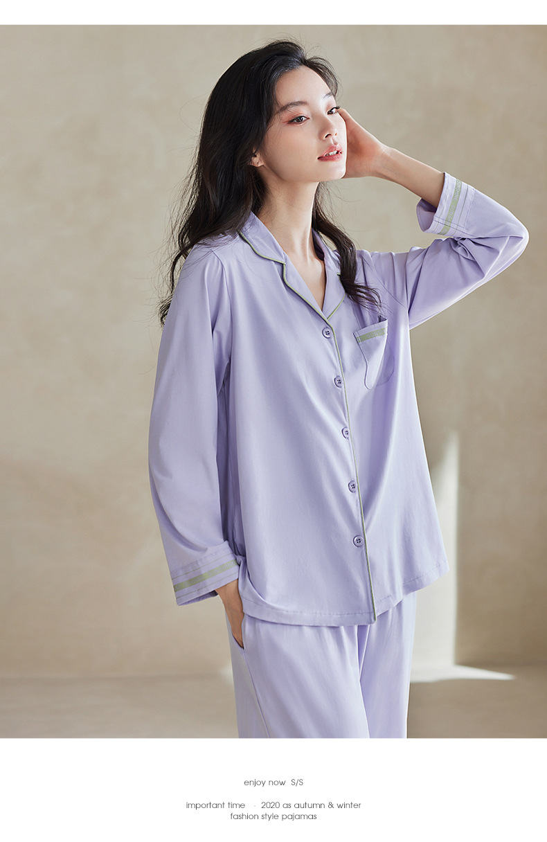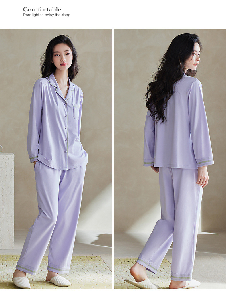 軒の美しい春秋の女性の部屋の服の長袖のズボンの純綿は棚を引っ張って簡単に外で2セットのパジャマの女性を着ることができます。