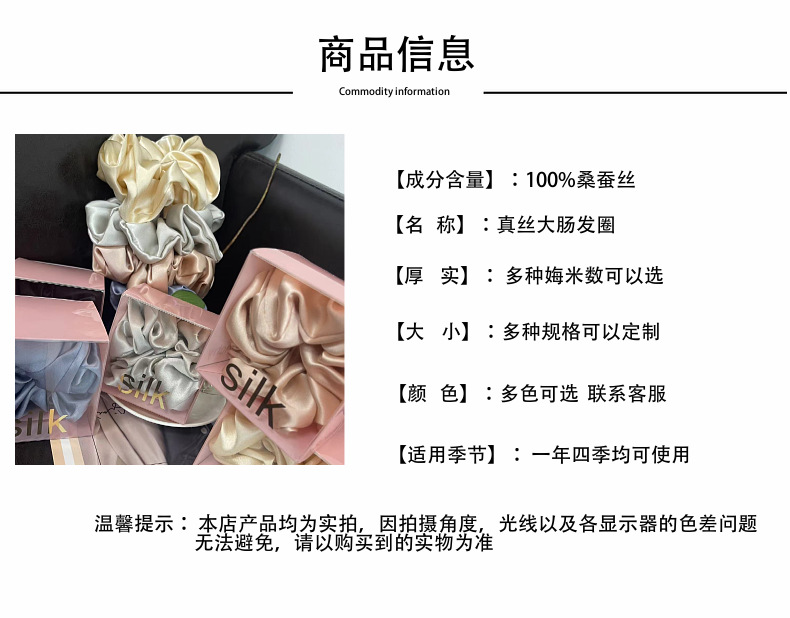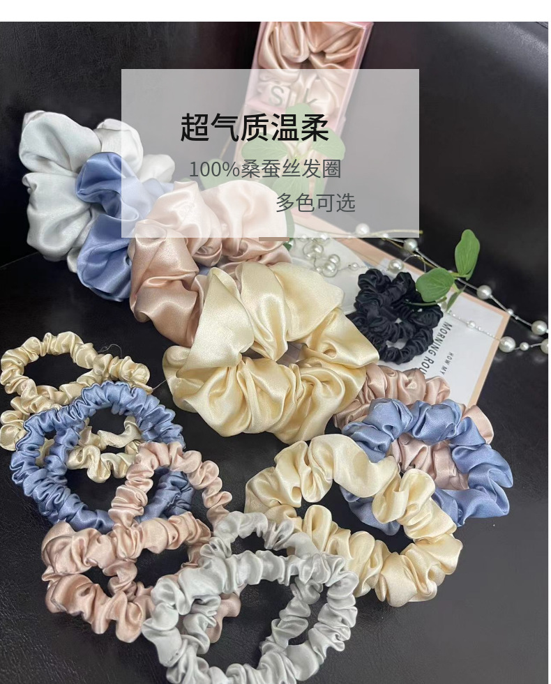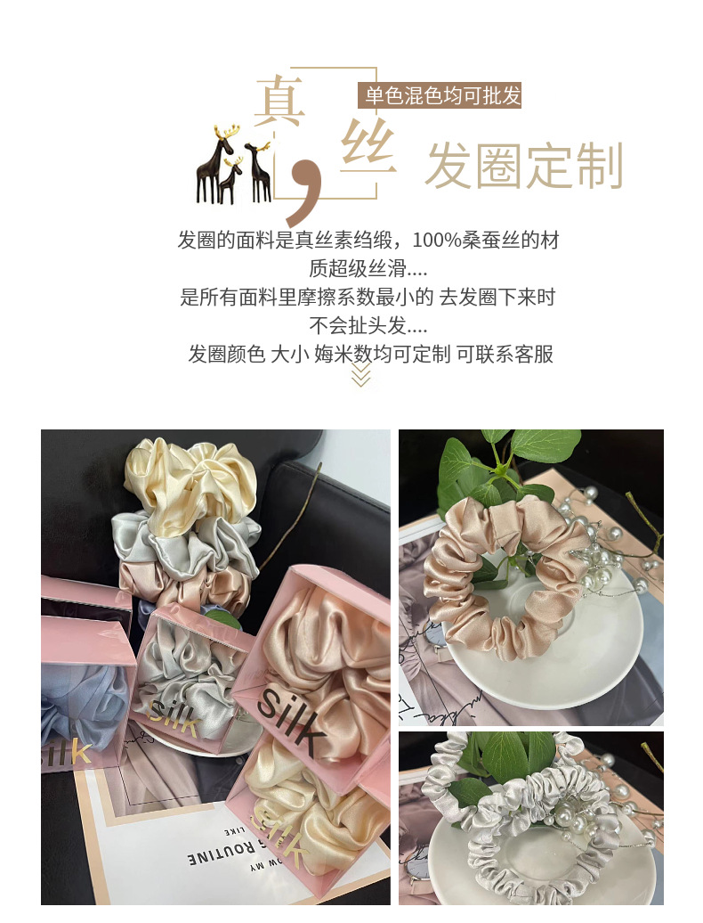 法式亮面22姆米真丝发圈100%桑蚕丝大肠护发养发不留痕不伤发