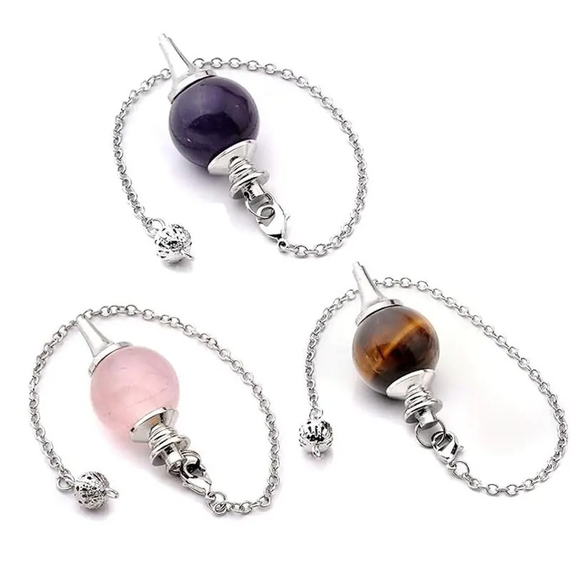 外国貿易新商品古銀七色水晶振り子半宝石七色砂利樹脂霊振り子六角錐ペンダント