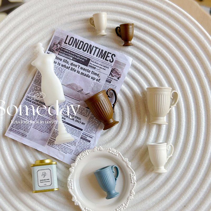 微缩场景法式复古中古宫廷风娃屋配件迷你高脚浮雕马克咖啡杯D599