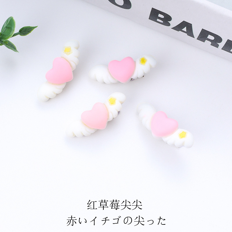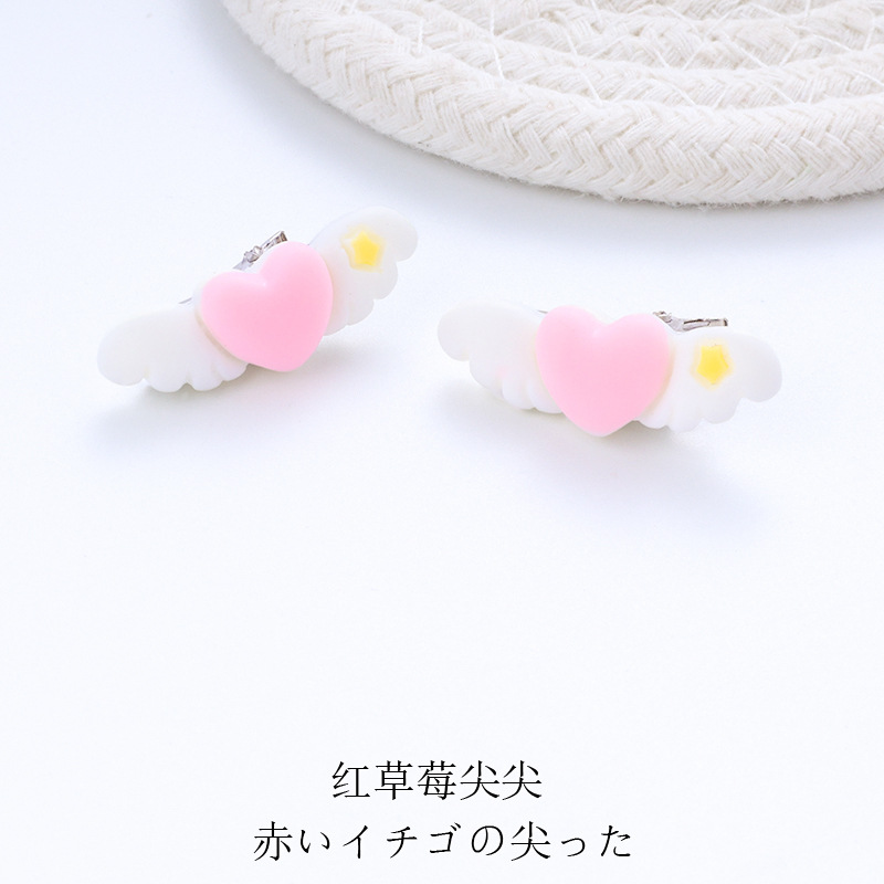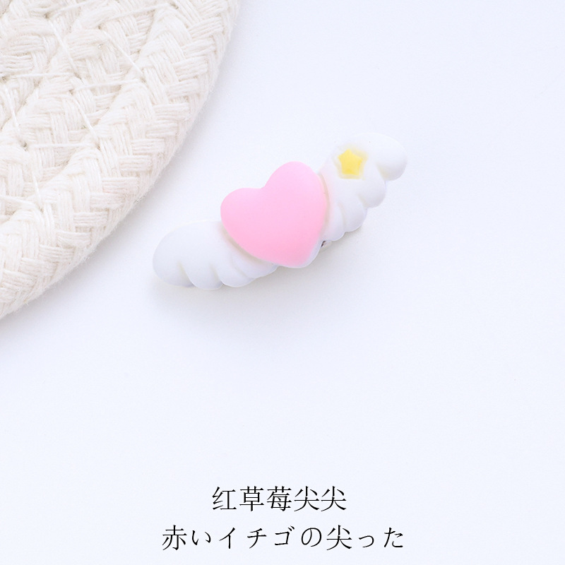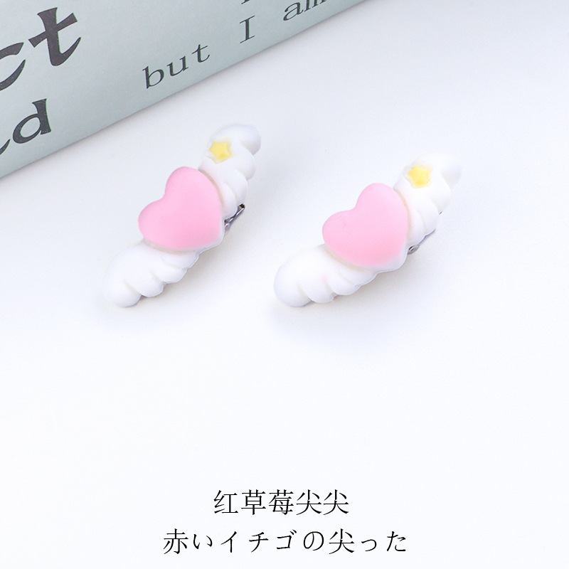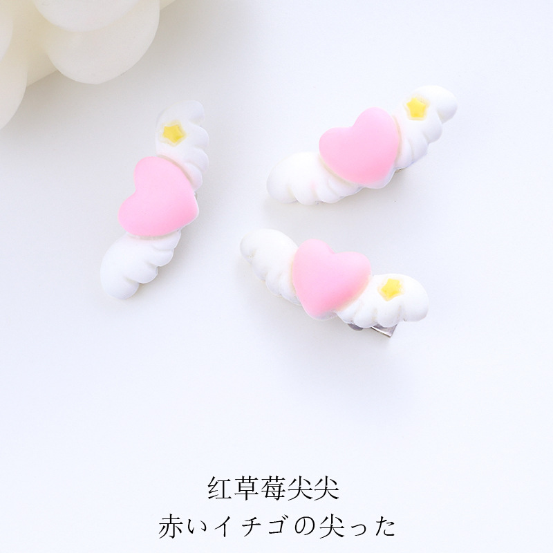 かわいいミニ愛の翼ヘアピンins少女心甘い妹柔らかいピンクの心2cmアヒルの口が女の子の頭飾りを挟んでいる