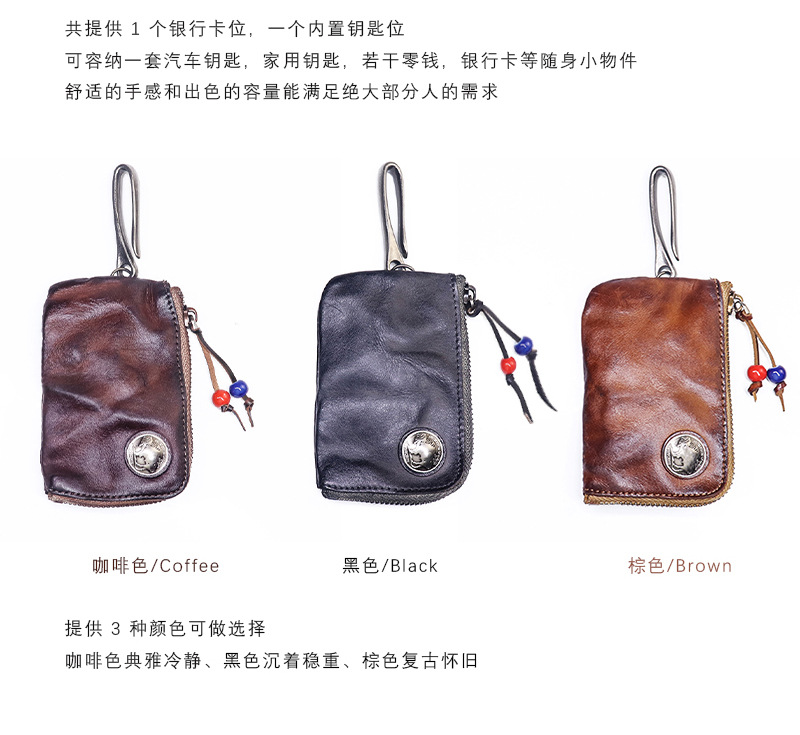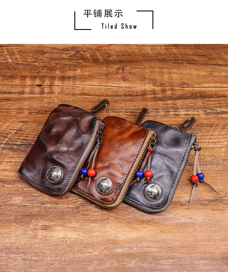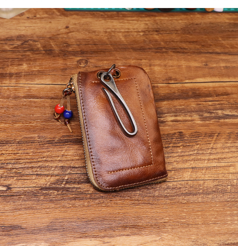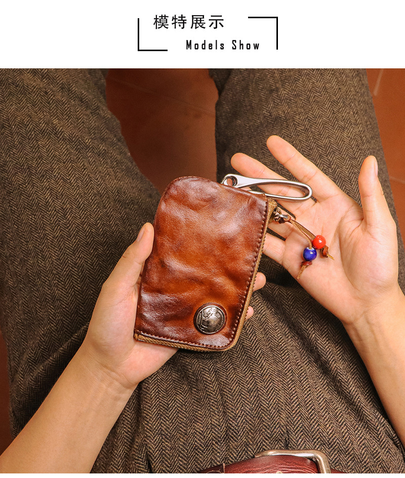 クロスボーダー本革キーバッグメンズトップ層牛革植なめソフトレザー手作りこすり小銭入れドアキーケース