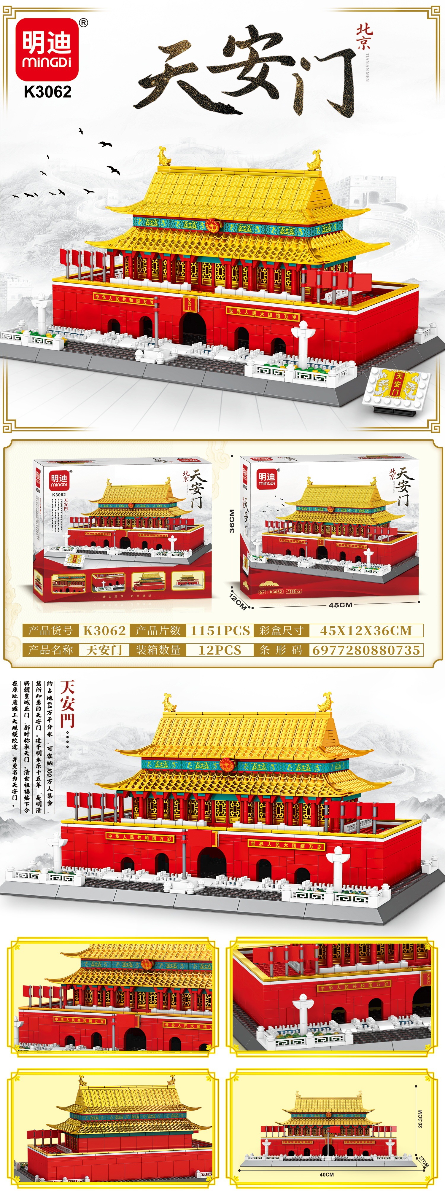 K2076-天安門 (318 個の小さな粒子),6001-天安門 (2000 微粒子),22015-紫禁城 (2000 微粒子),6002-黄鶴楼 (2000 微粒子),6035-老君山 (2000 微粒子),22020-杭州西湖 (2000 微粒子),22021-太和宮の雪景色(2500微粒子),6008-大雁塔 (2000 粒子) ライト付き,GL045-蘇州庭園(2580粒子),22040-大唐不夜市 (2000 粒子) ライト付き,22031-袁明源 (2000 以上の粒子),21010-タージマハル (2000 以上の粒子)