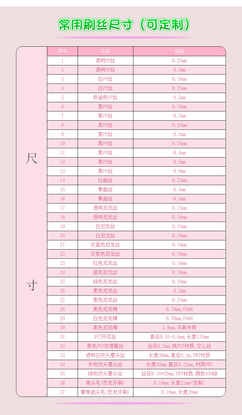 仕様 PBTブラシワイヤー 80g,PBTブラシ 370g,PBTブラシワイヤー 1kg