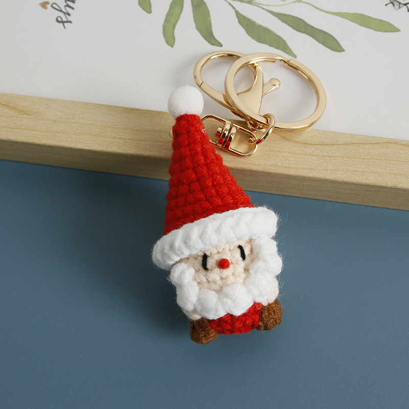 2025圣诞节手工编织圣诞老人钥匙扣 毛线钩织迷你钥匙扣 圣诞挂饰