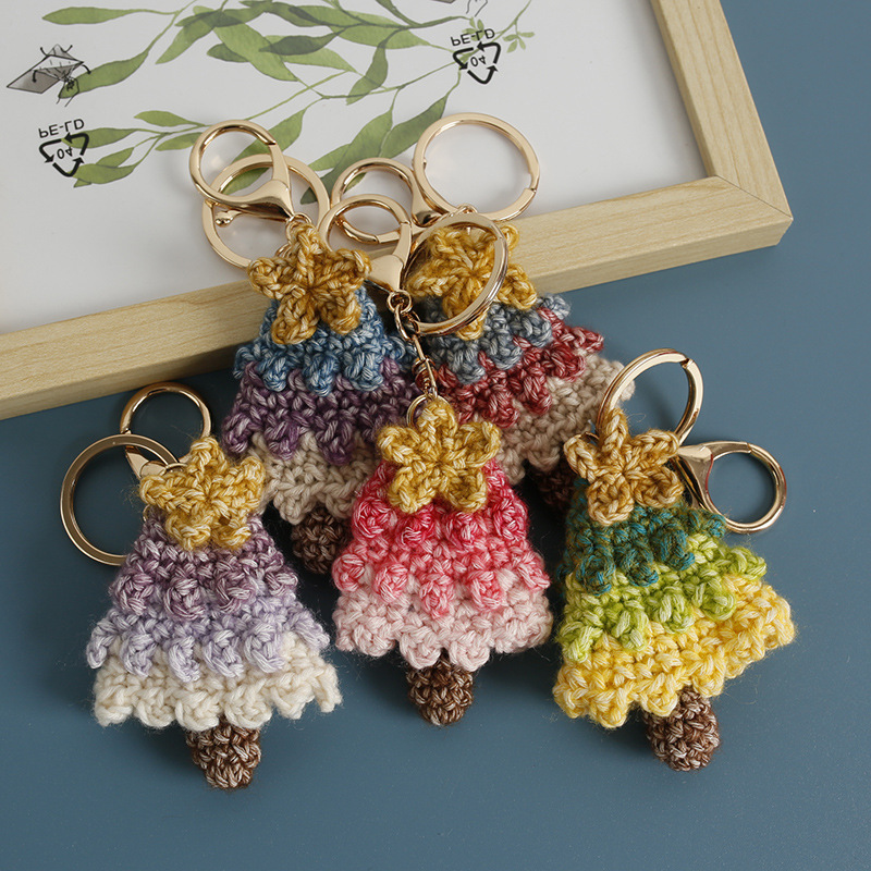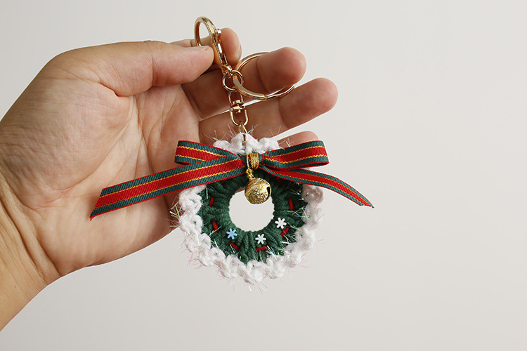 クリスマス新作手編みストラップ毛糸鉤織クリスマスツリー雪花キーホルダー手作りストラップ完成品