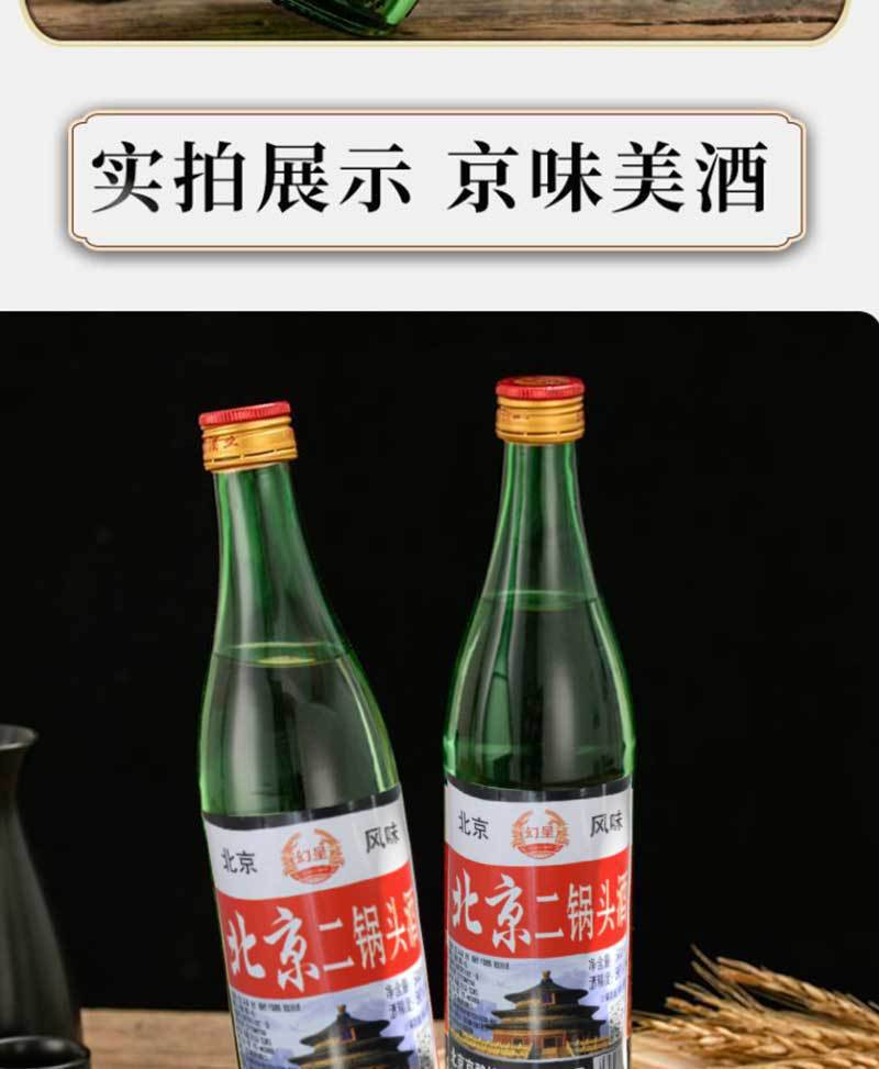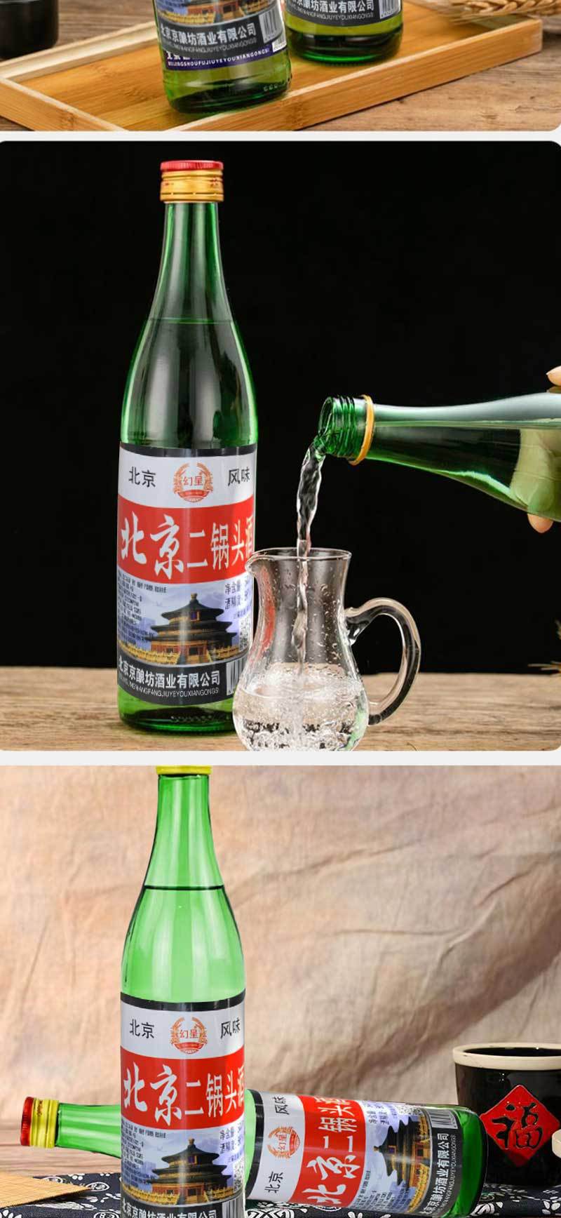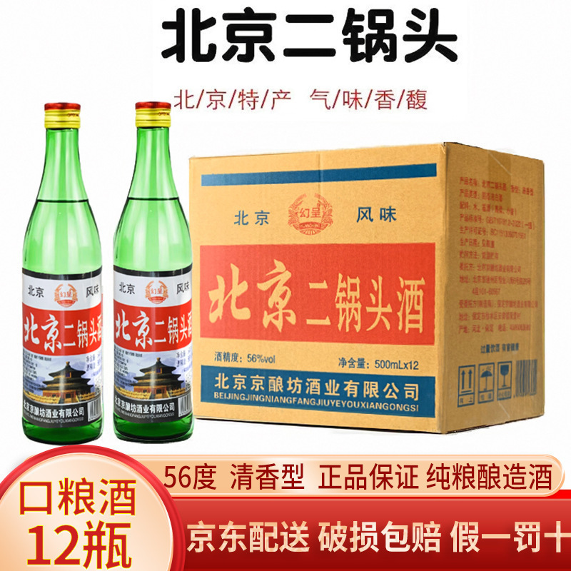 北京二锅头56度大二清香型高度白酒500粮酒整箱12瓶绿瓶批发