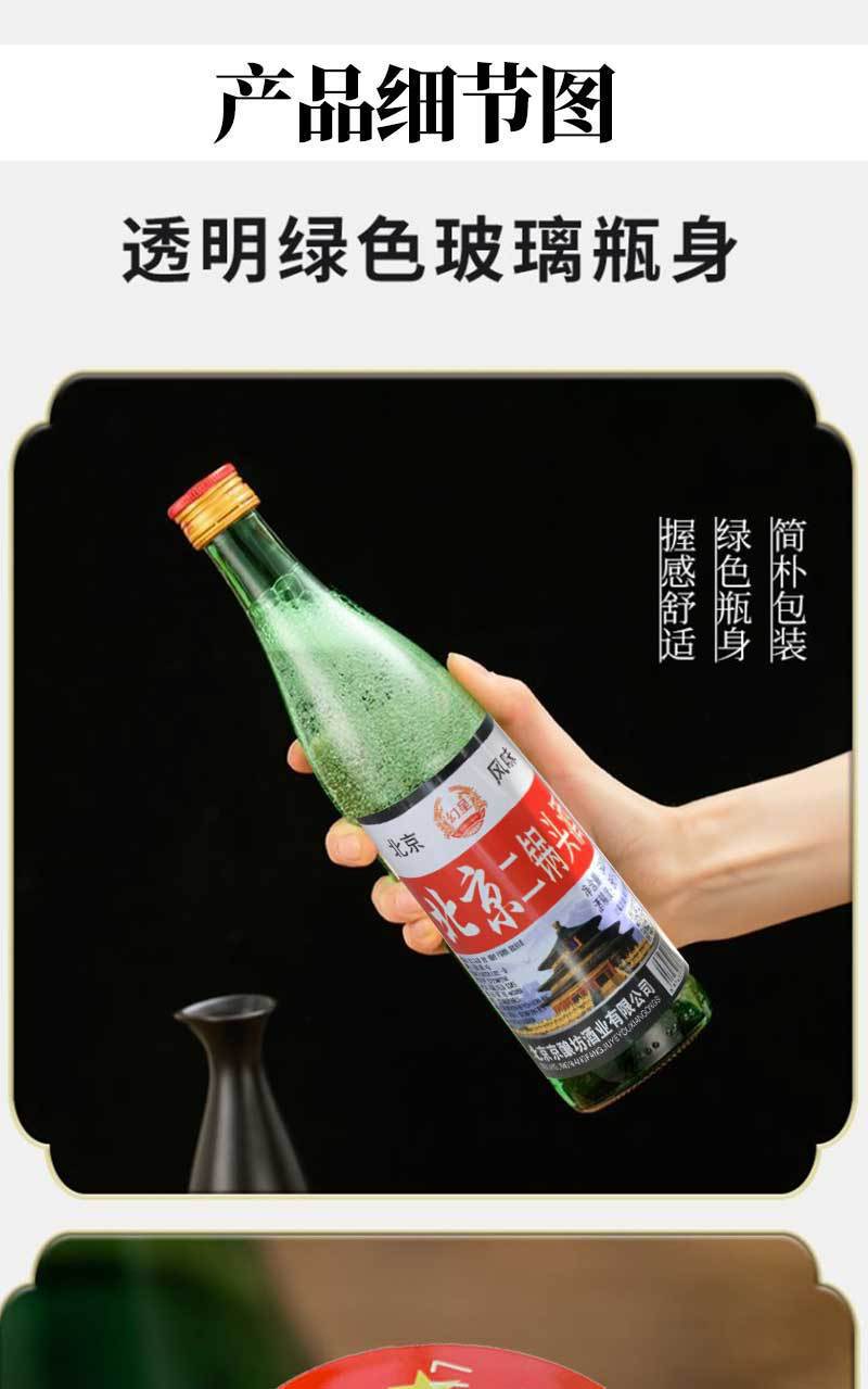 北京紅星二鍋頭純食糧優級清香型白酒56度52度43度緑瓶大二500ml * 6