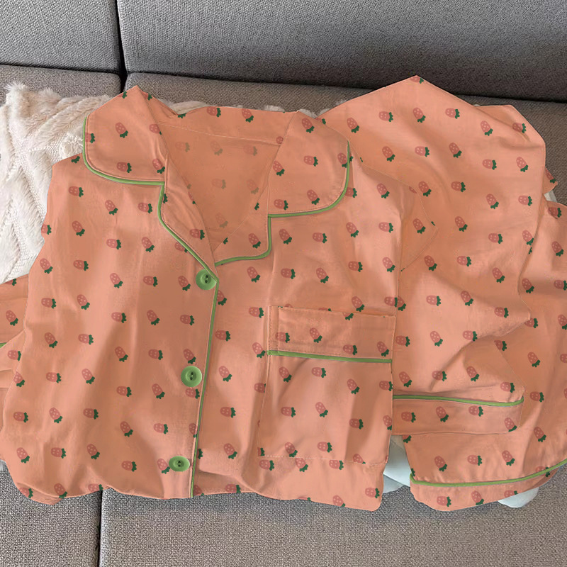 田園風の小さい清新なイチゴはパジャマの女性の秋のタイプの長袖の甘い学生の寮の家の服のスーツの卸売りをいっぱいに印刷します。