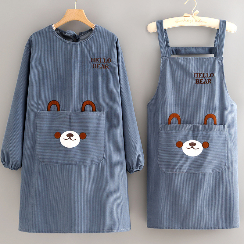 おしゃれなエプロンキッチン家庭用ベルベット長袖料理防汚通気新型作業服女性大人韓国版