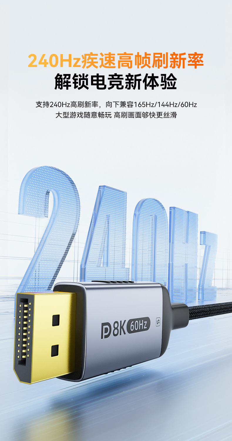 Displayport 2.1電気競争高清線16K @ 30Hz 10K @ 60Hz dp 2.1超清ビデオ線