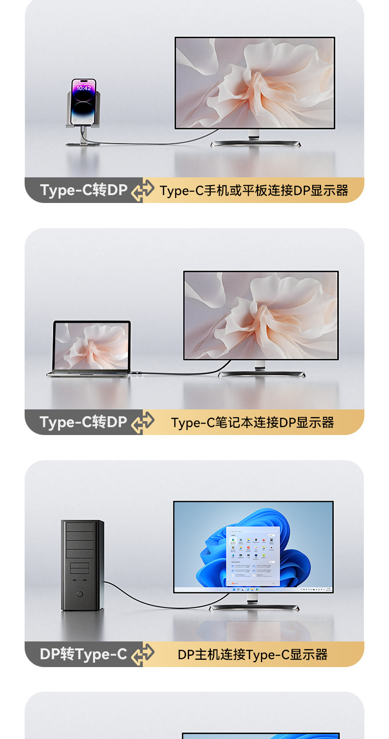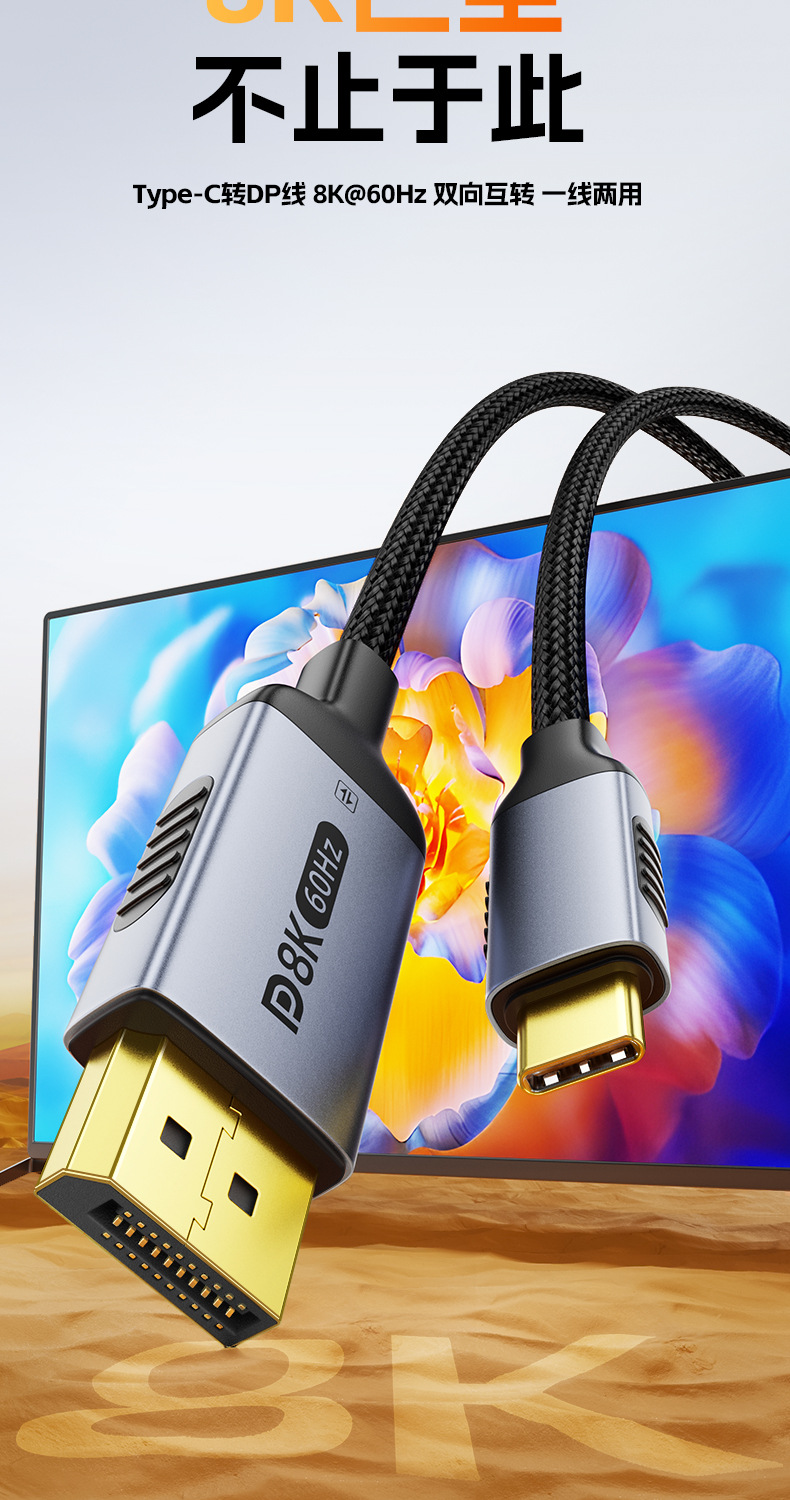 Type-c to dp アダプタケーブル 8K60Hz コンピュータモニター双方向相互変換 DP to type-C 携帯電話同一スクリーンケーブル