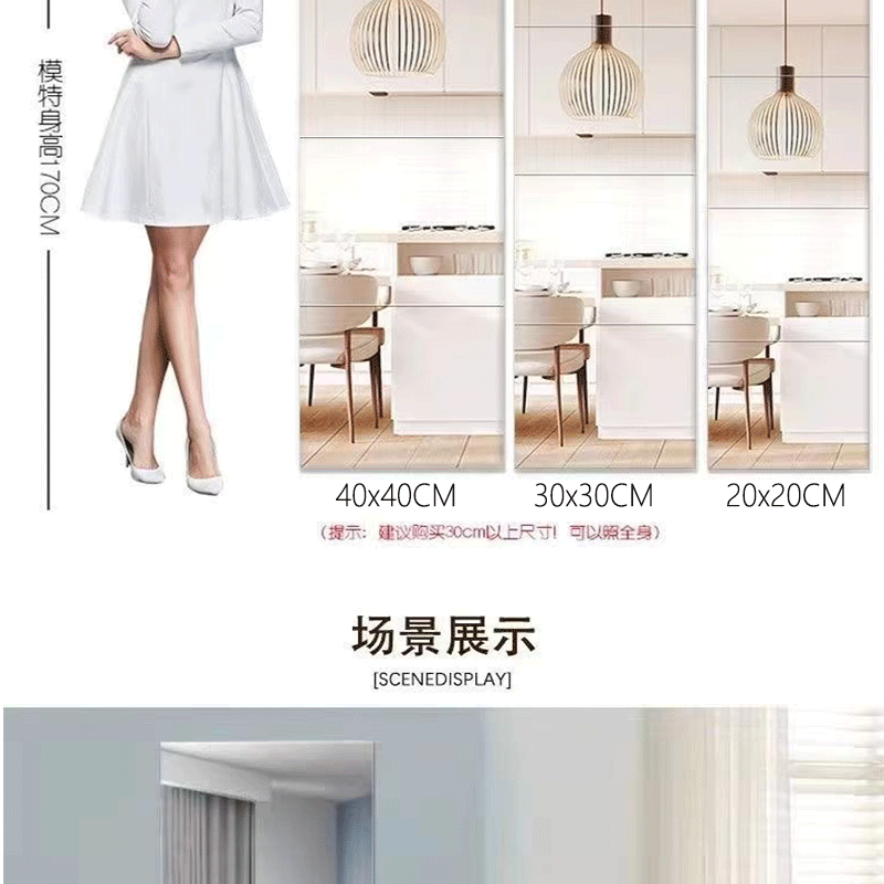 国境を越えた人気の滑走路スプライシングミラー全身ミラー自己粘着ソフトミラーウォールミラー変形なしパンチングなし寝室ホーム